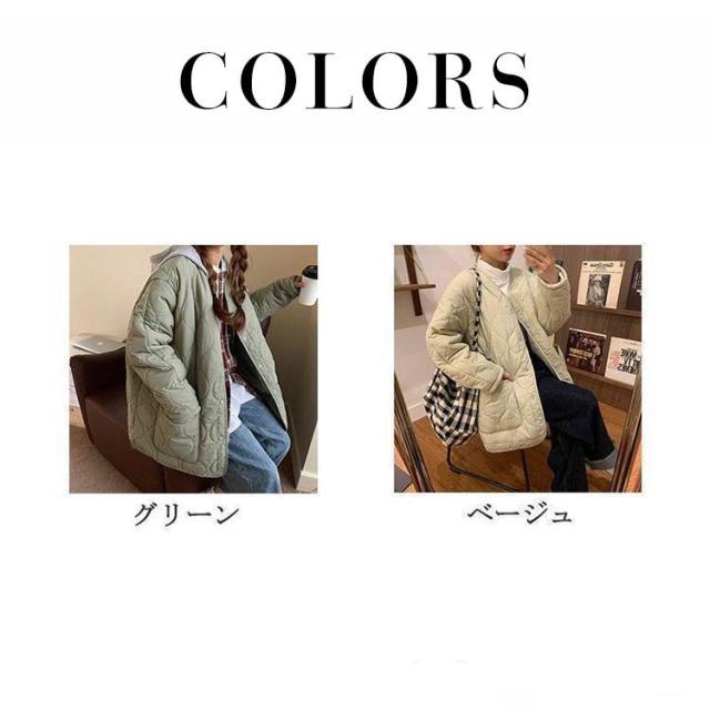 【ポイント5倍!】キルティングコート レディース コート ジャケット キルティング 中綿コート 軽い 防寒 キルティングジャケット ロング ノーカラー フード付き 冬 体型カバー 秋