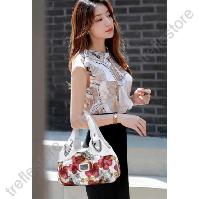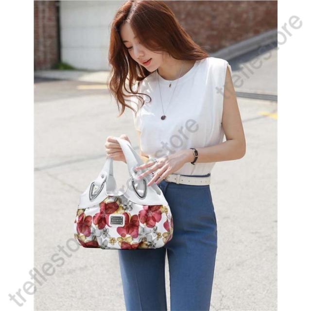 ●洋服のコーデも場所も選ばずに使える植物柄がおしゃれなバッグです。