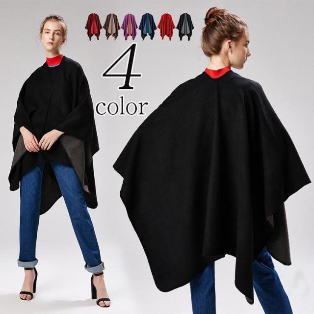 ポンチョ レディース マントコート ストール ケープ アウター 秋冬 無地 ロング丈 着痩せ おしゃれ