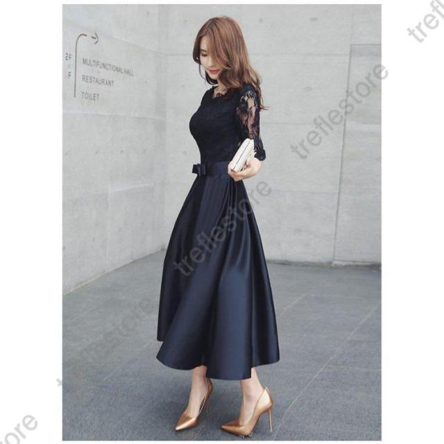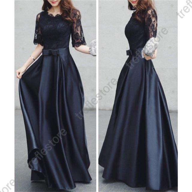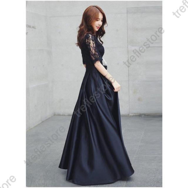 パーティードレス ドレス ロングドレス ナイトドレス イブニングドレス ロングドレス 結婚式 ウェディングドレス 二次会ドレス お呼ばれドレス フォーマル ドレス 大人 上品 マキシ丈ドレス レース リボン 袖あり 結婚式 成人式 パーティー 二次会 発表会 演奏会 フレア