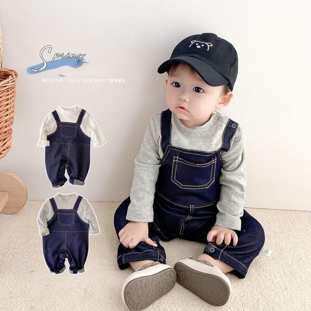 【ポイント5倍!】ベビー服 ロンパース 男の子 0-2歳 子供服 長袖 可愛い カバーオール 綿 コットン デニム 赤ちゃん 新生児 オールインワン 春服 出産祝い ギフト