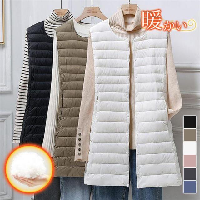 【ポイント5倍!】ダウンベスト レディース ジレ インナー ロング丈 羽織り 軽量 着痩せ シンプル きれいめ カジュアル 保温 暖かい 防寒 秋冬