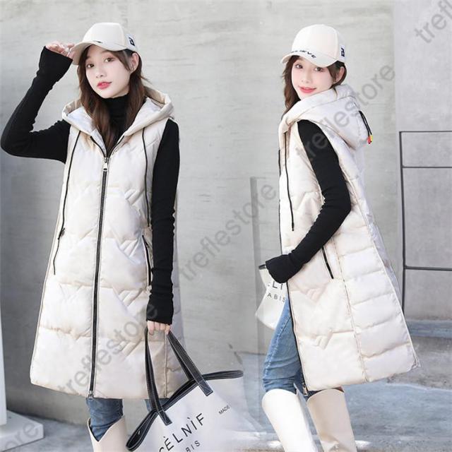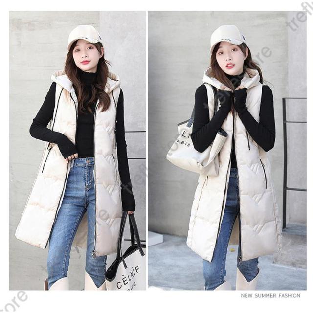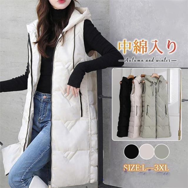 【ポイント5倍!】ベスト レディース 中綿ベスト ロングベスト ダウンベスト 厚手 着痩せ トップス フード付き 前開き 暖かい 防寒 秋冬 アウター アウトドア