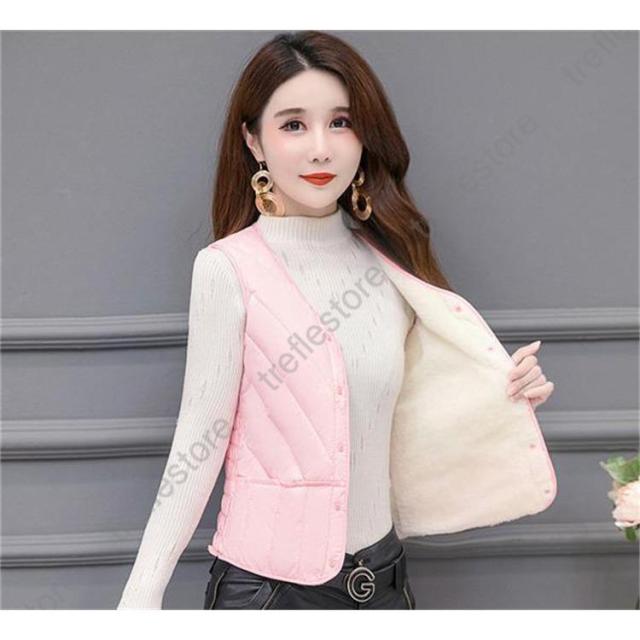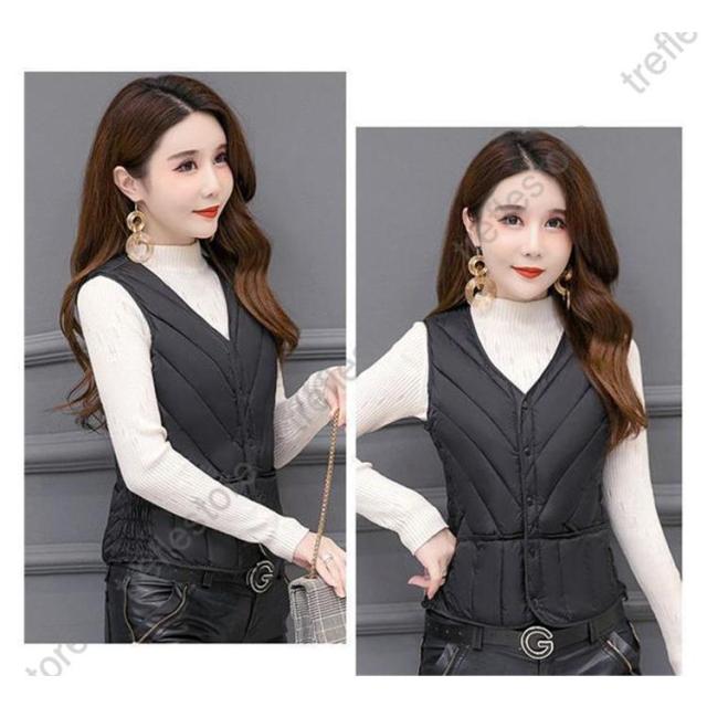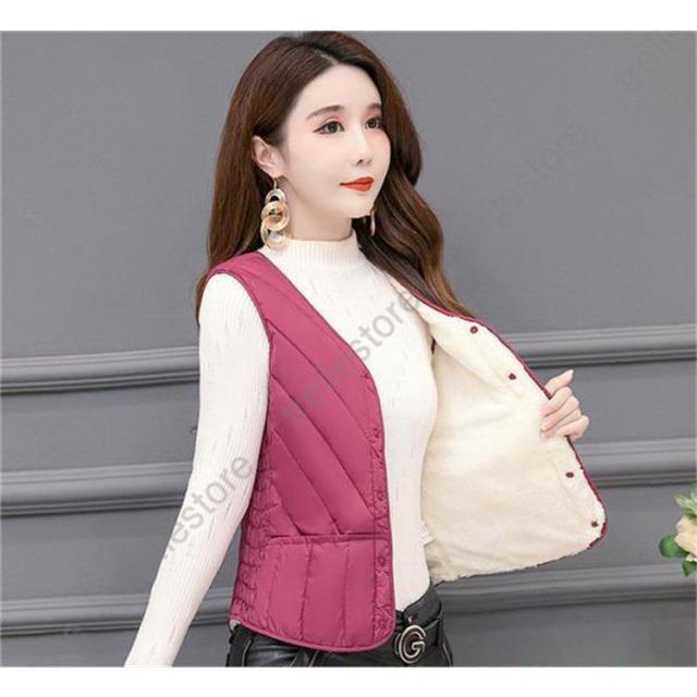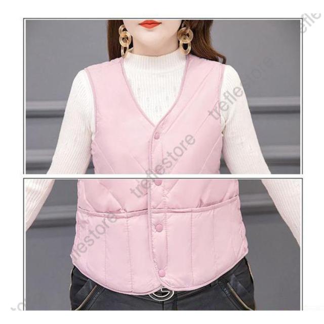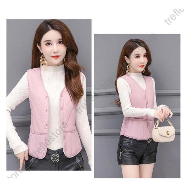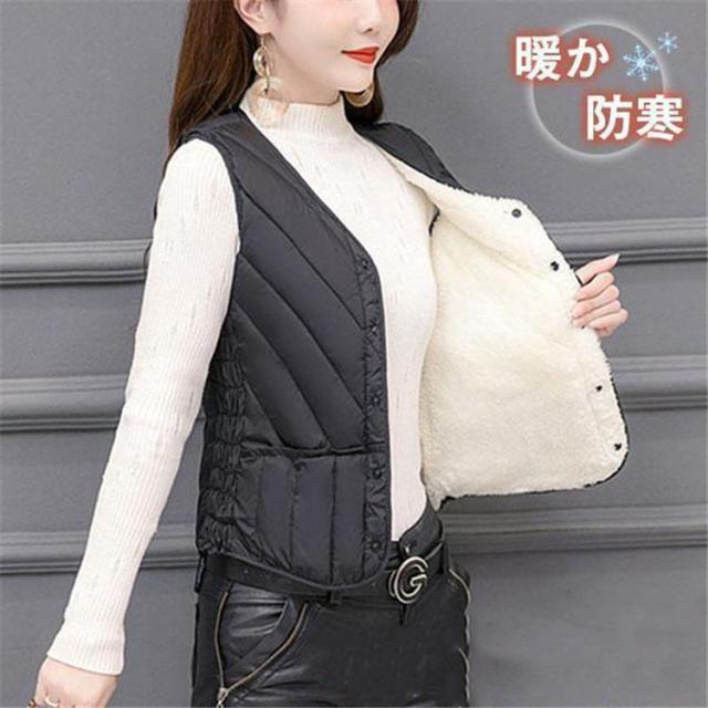 【ポイント5倍!】中綿ベスト レディース ダウンベスト 冬ベスト ノースリーブ Vネック ポケット付き ルームウェア 普段着 無地 防寒 きれいめ 暖かい 母の日