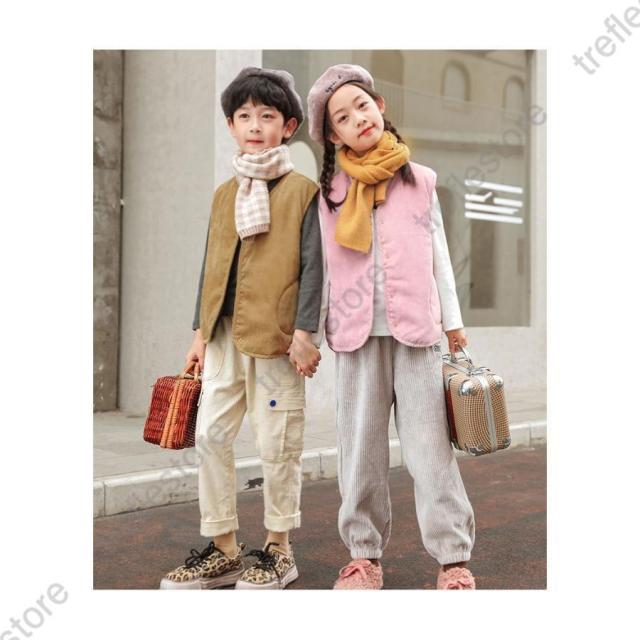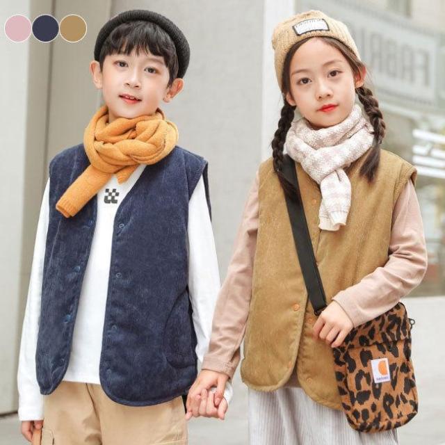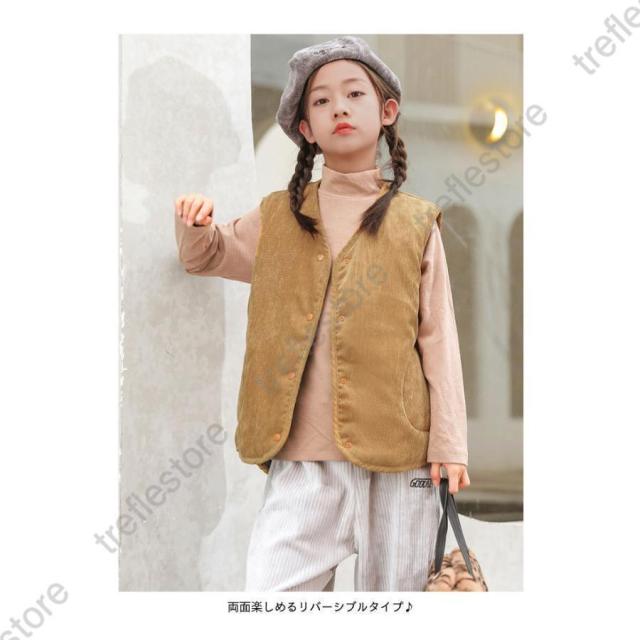 ベスト キッズ 両面 ベスト リバーシブル 中綿 ベスト コーデュロイ 子供 子ども服 秋冬 男の子 女の子 ジュニア ベスト 前開き トップス チョッキ 防寒 暖かい カジュアル おしゃれ 冬物 新作