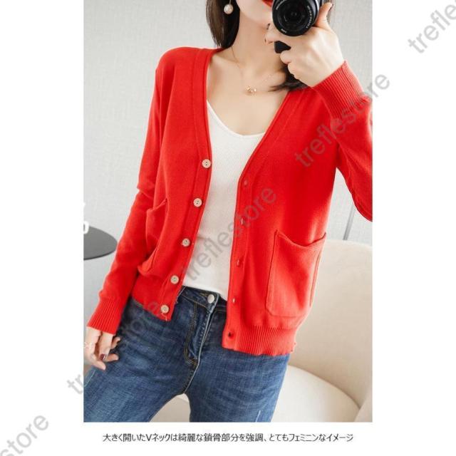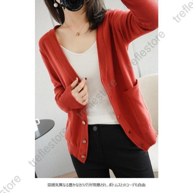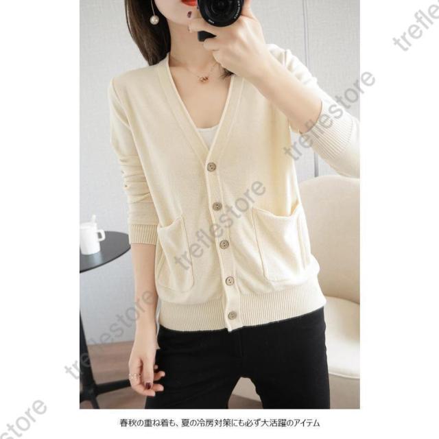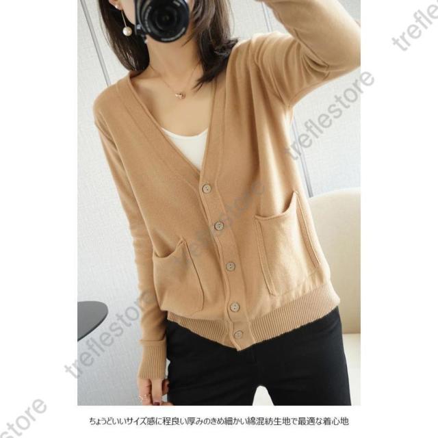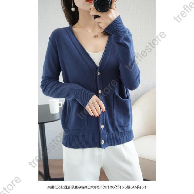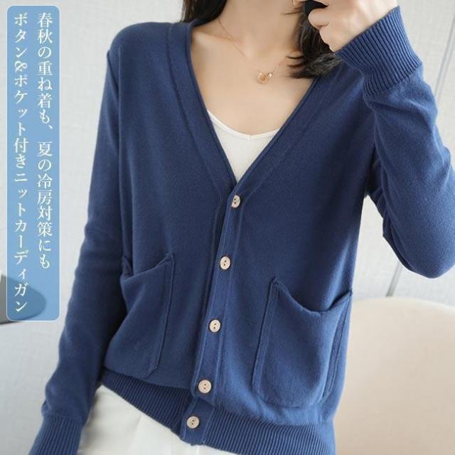 【ポイント5倍!】ニットカーディガン レディース カーディガン 通勤 ニットコーディガン ボタンカーディガン 冷房対策 Vネック コーディガン ポケット付き 春秋