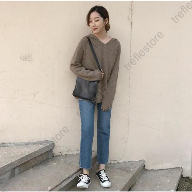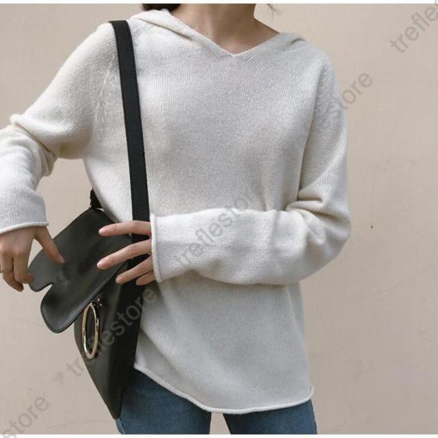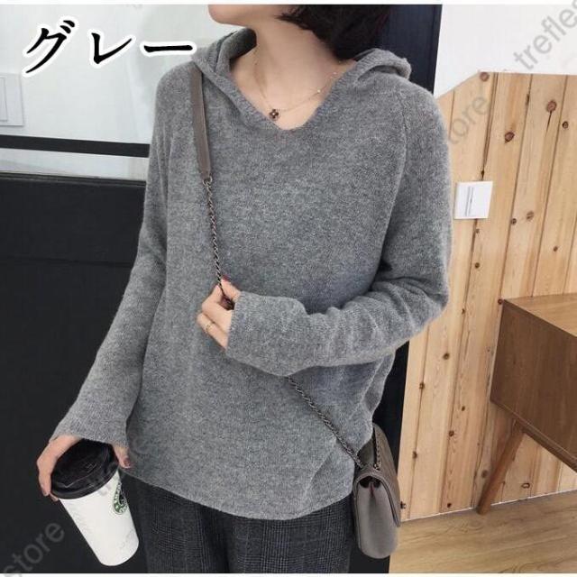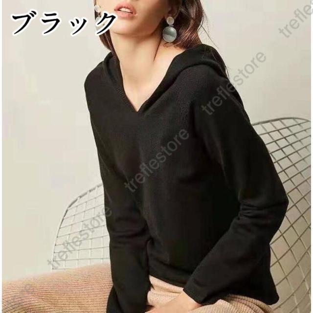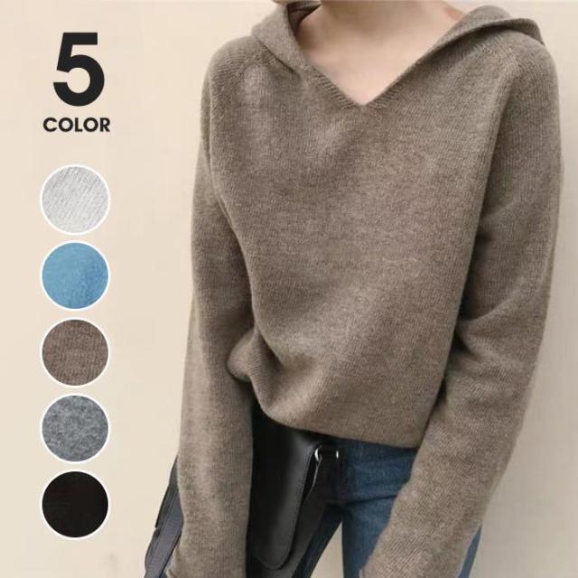 【ポイント5倍!】ニットパーカー レディース ニット パーカー Vネック フード付き トップス 長袖 プルオーバー 秋物 冬物 無地 カジュアル 女性用