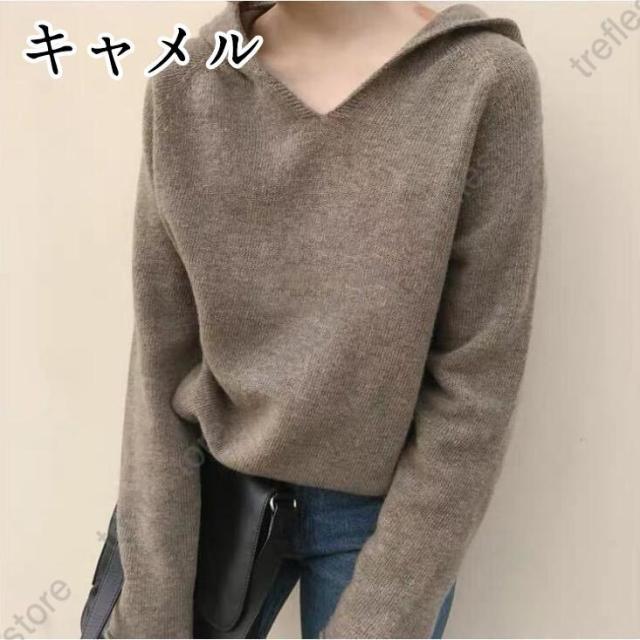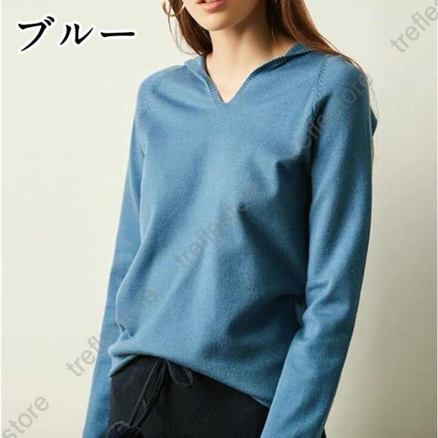 ニットパーカー レディース ニット パーカー Vネック フード付き トップス 長袖 プルオーバー 秋物 冬物 無地 カジュアル 女性用 可愛い 着回し おしゃれ シンプル ファッション