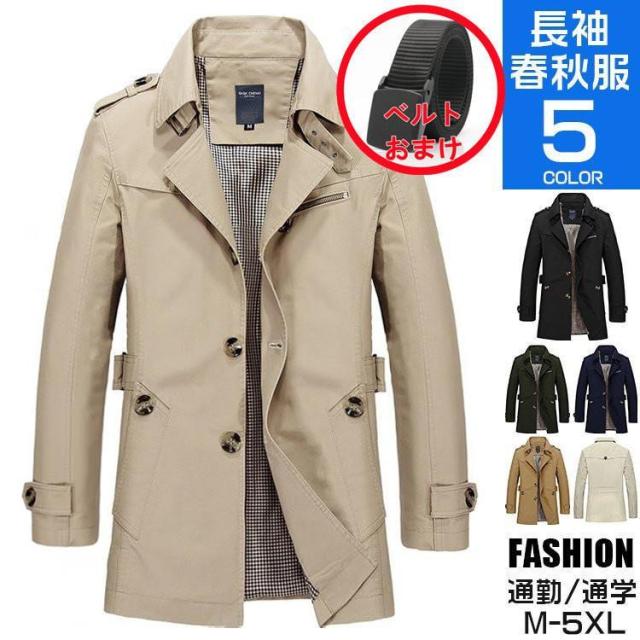 【ポイント5倍!】トレンチコート メンズ ミリタリーコート ロングコート スプリングコート アウター カジュアル ビジネス 秋 春 無地