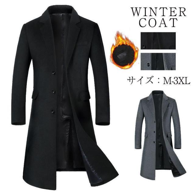 【ポイント5倍!】チェスターコート メンズ 超ロングコート ウールコート 中綿入り 暖かい ビジネス オフィス 通勤 コート 無地 大きいサイズ 秋服 紳士服
