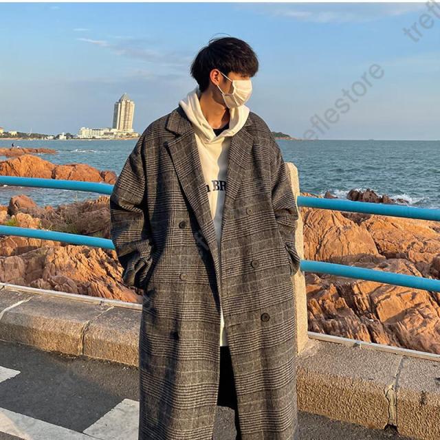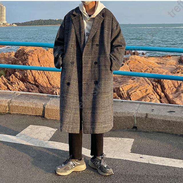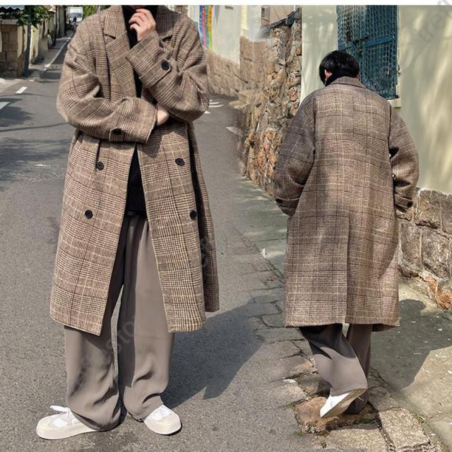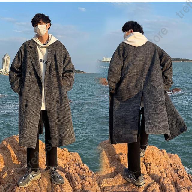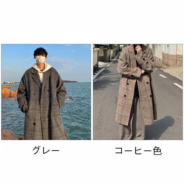 【ポイント5倍!】チェスターコート メンズ ロングコート チェック柄 ポケット付き トップス カジュアル 保温 防風 防寒 暖かい ゆったり アウター 秋冬 おしゃれ