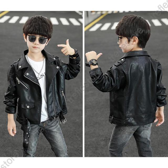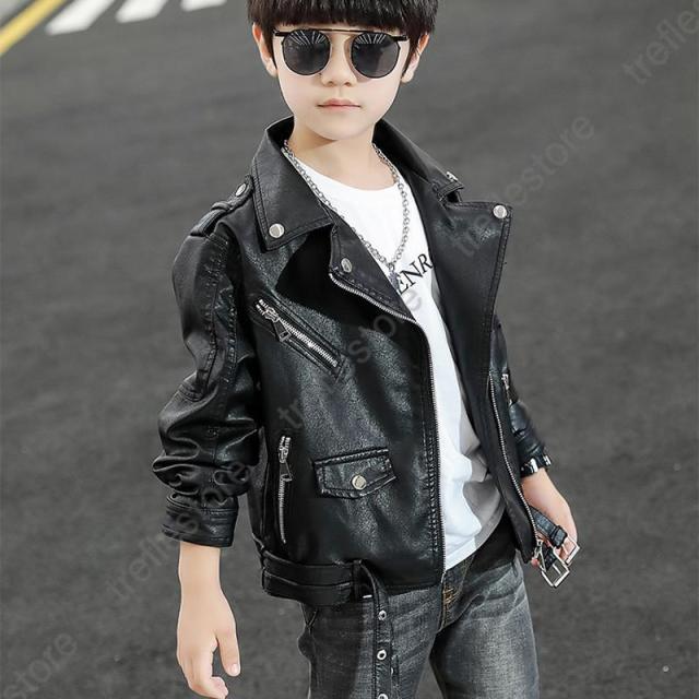 PUレザージャケット キッズ ライダース フェイクレザー ライダースジャケット 男の子 アウター トップス 子供服 ブルゾン 可愛い ジュニア 着心地良い 秋冬 防風 防寒 80 90 100 110 120 130 140 150cm