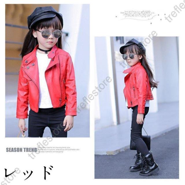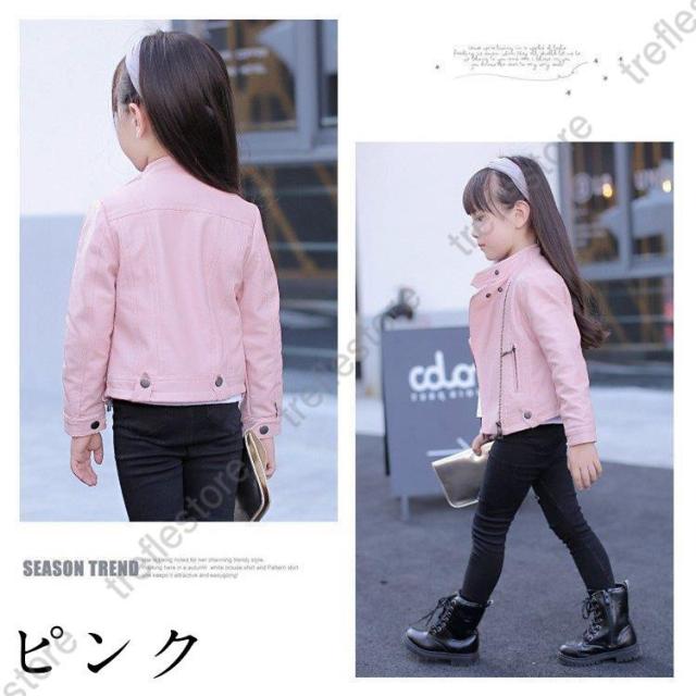 【ポイント5倍!】レザージャケット キッズ 子供服 女の子 アウター 春秋 革ジャン PUジャケット 韓国子供服 ジュニア ライダースジャケット おしゃれ 可愛い カジュアル 新品 160