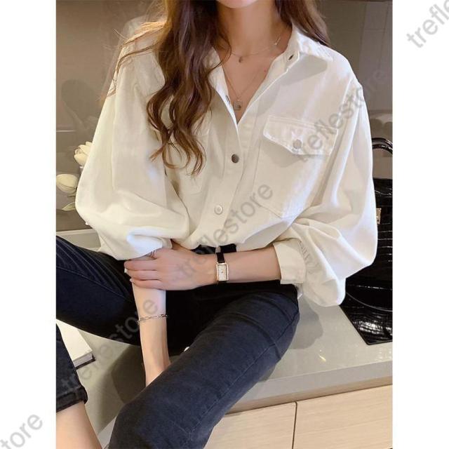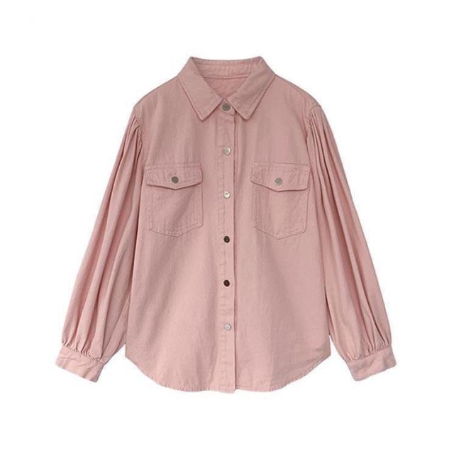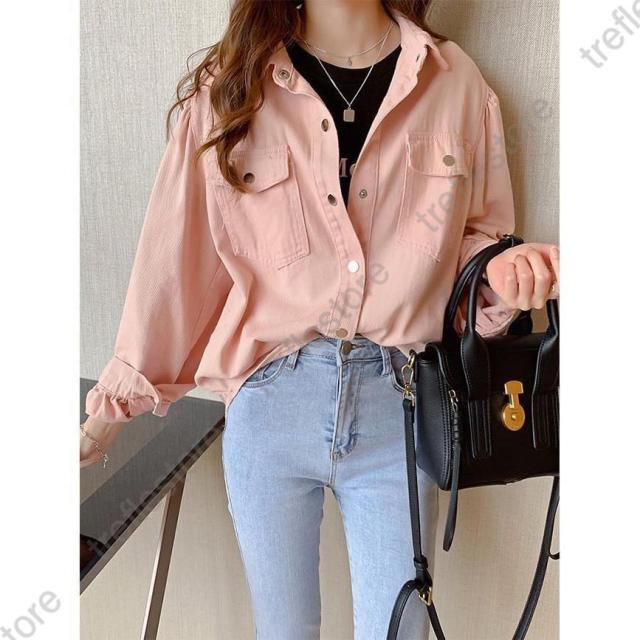【ポイント5倍!】デニムシャツ レディース シャツ 厚手 ブラウス 長袖 ゆったり デニムシャツ 白 長袖シャツ ピンク 春 ライトアウター シャツジャケット 秋