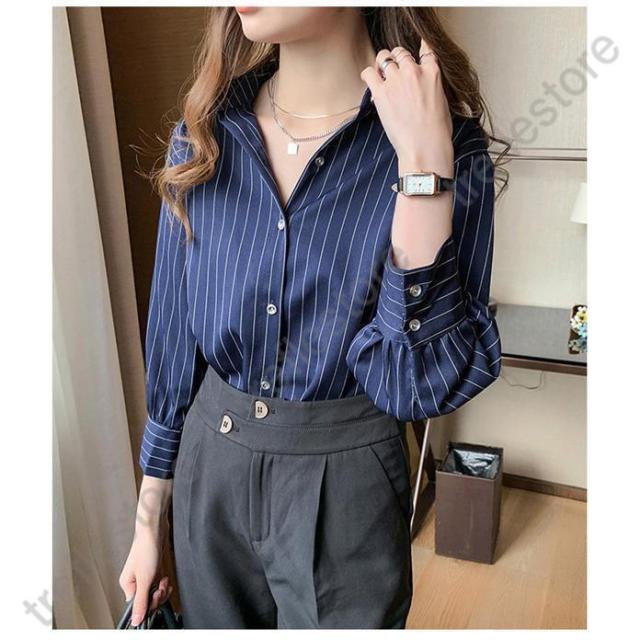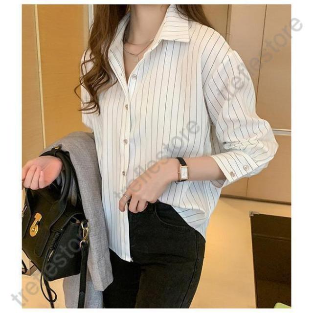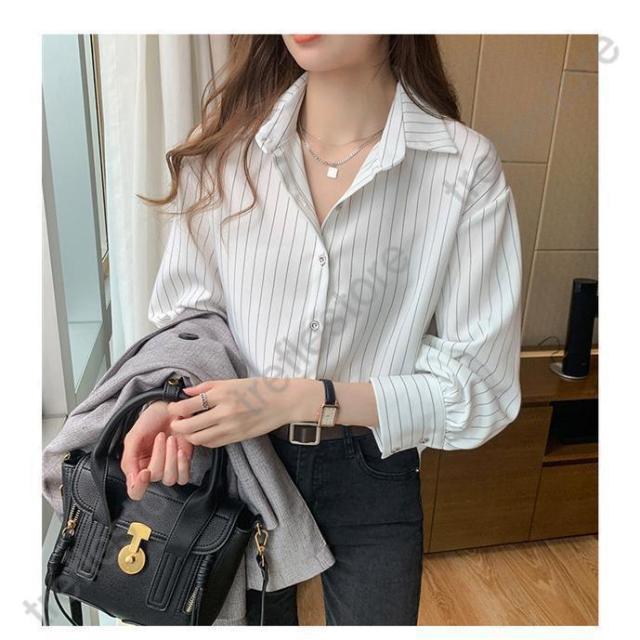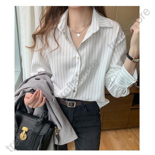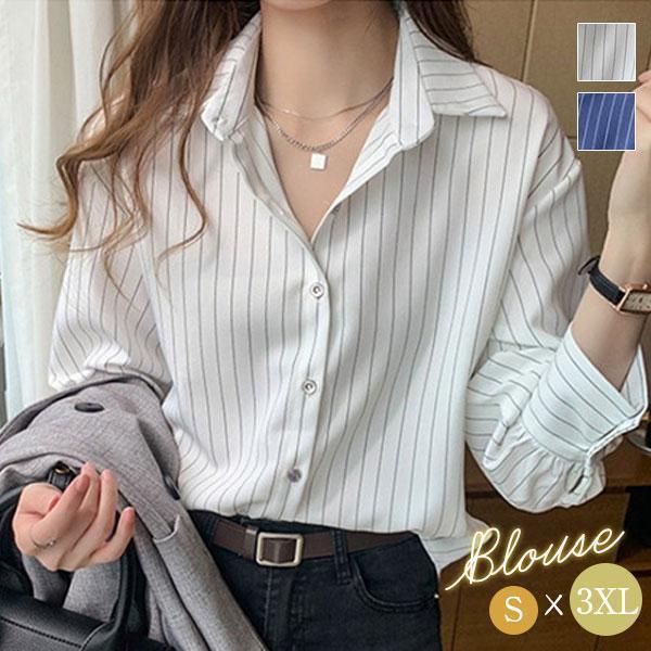 【ポイント5倍!】シャツ ブラウス 長袖 レディース ワイシャツ 開襟シャツ 春 秋 ストライプ柄 ビジネス カジュアル オフィス レギュラー 着痩せ 通勤 高級感