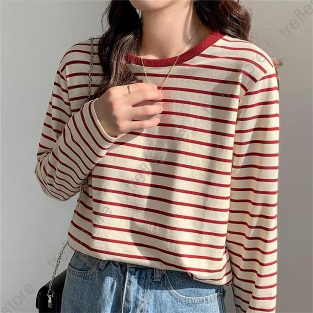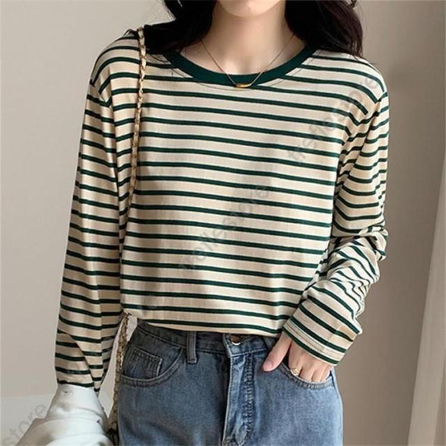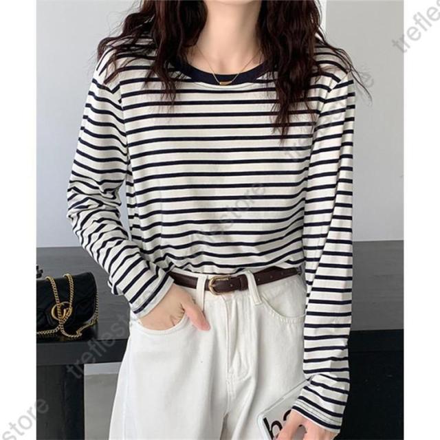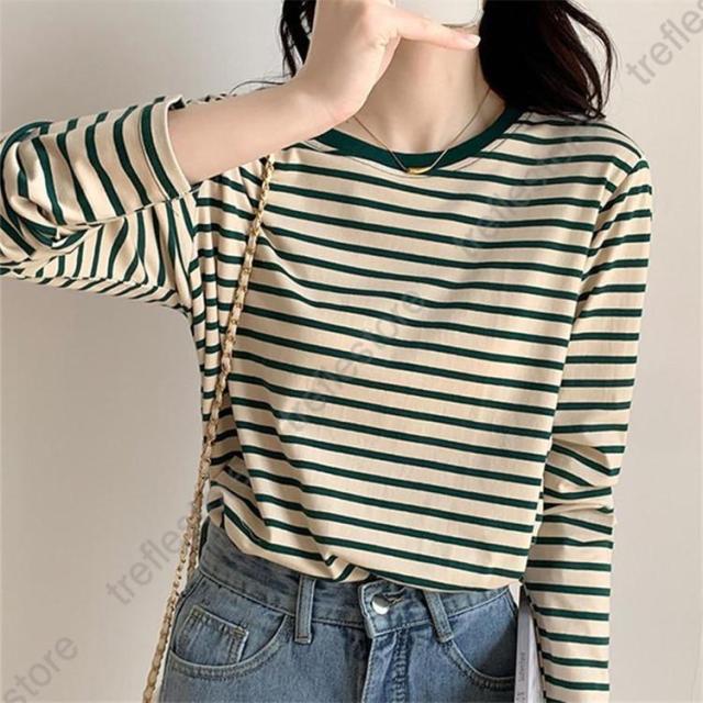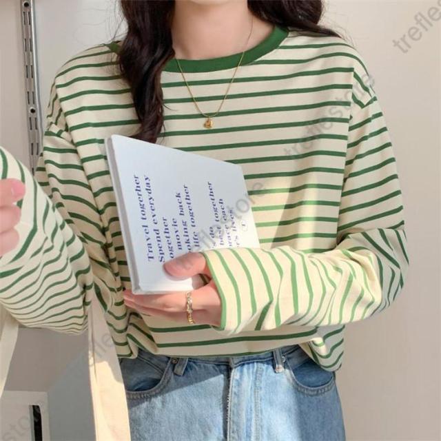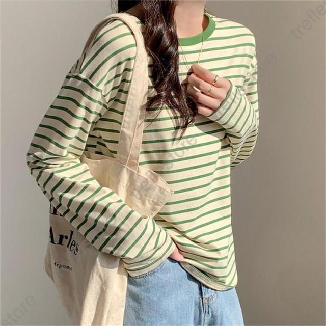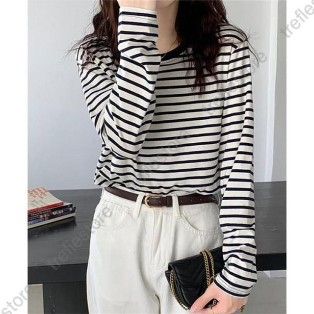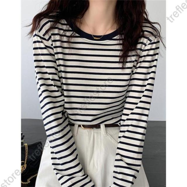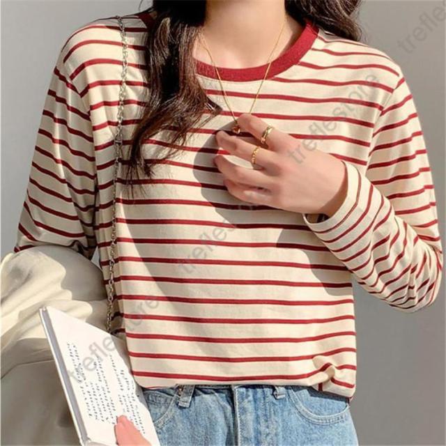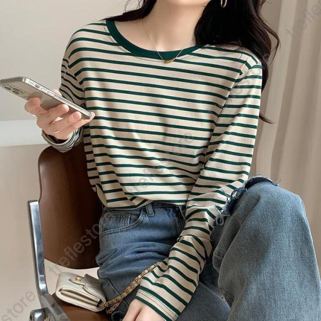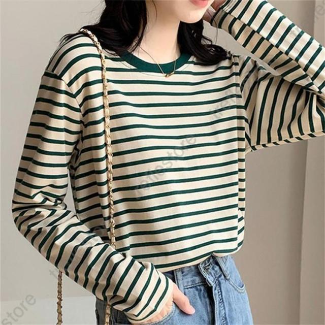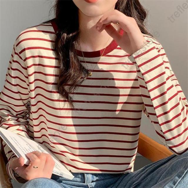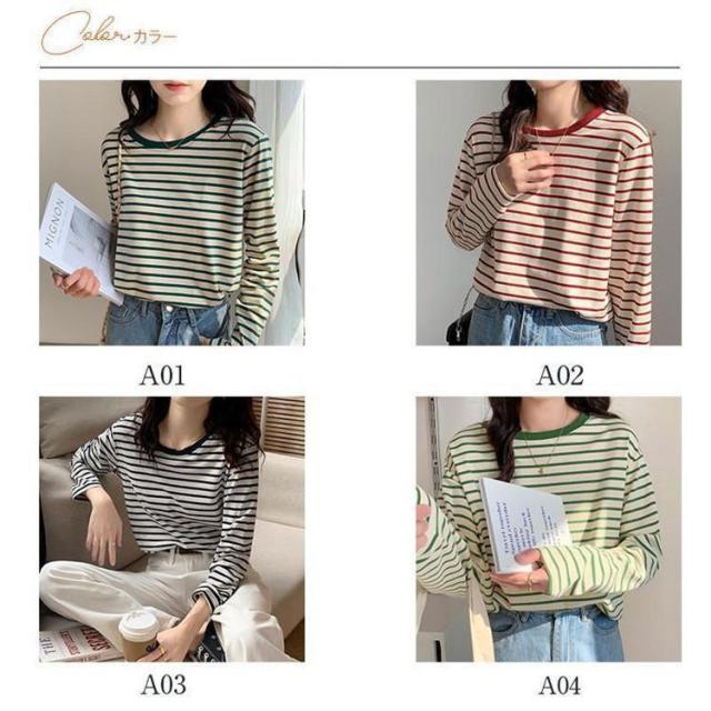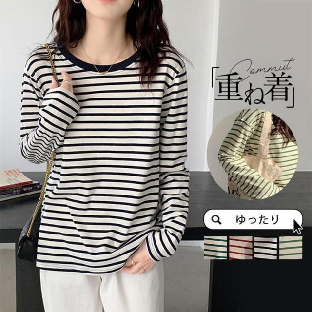 【ポイント5倍!】シャツ レディース トップス 長袖 ストライプ ボーダー カットソー ティーシャツ 着痩せ カジュアル 体型カバー インナー 重ね着 ルームウェア ブラウス