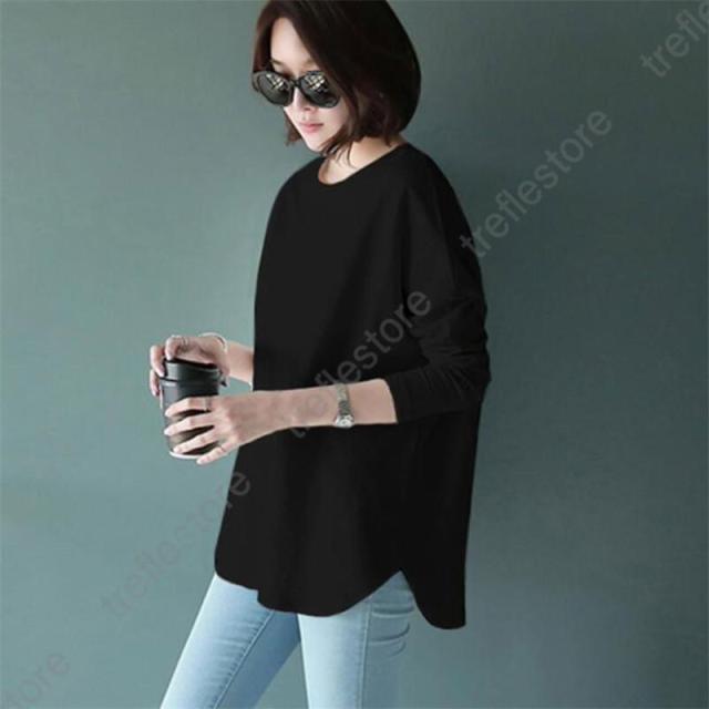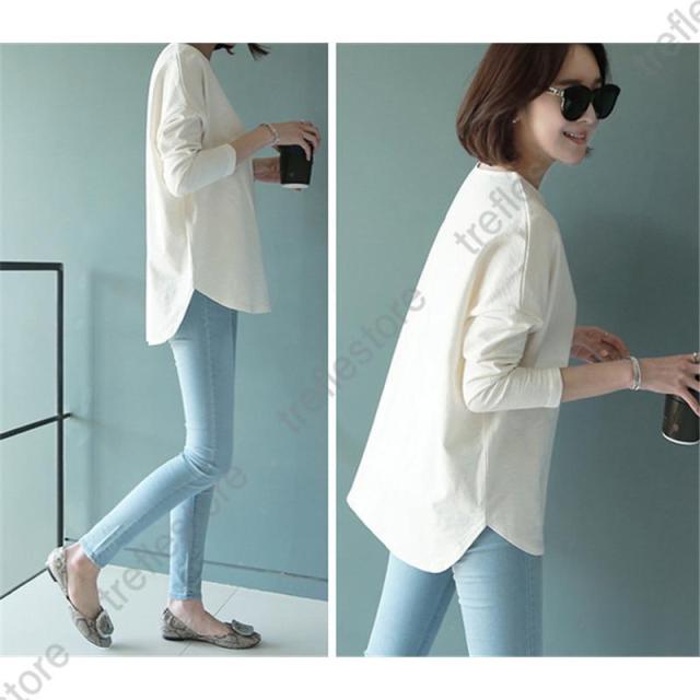 長袖 重ね着コーデ ゆったりサイズ 裾見せコーデ 裾出しコーデ イナー イヤードコーデ 春 夏 秋 冬 オールシーズ 綿素材 秋服 ディース
