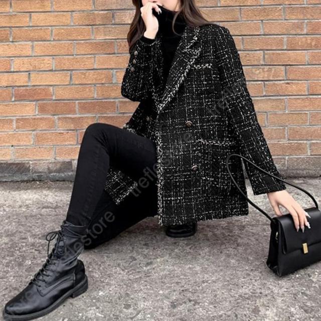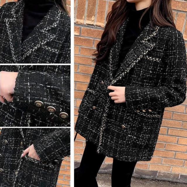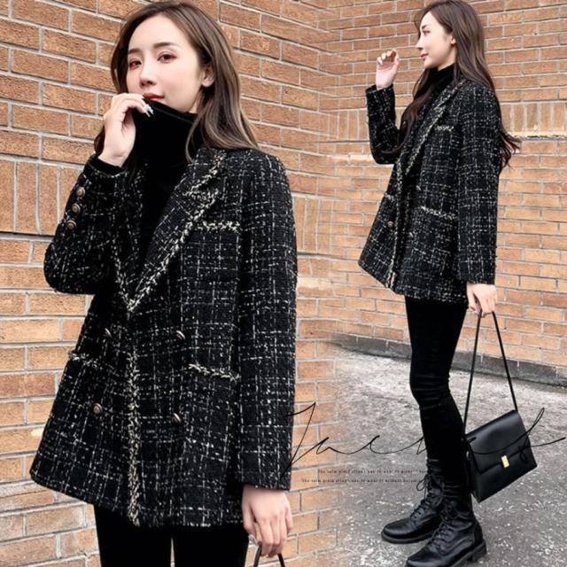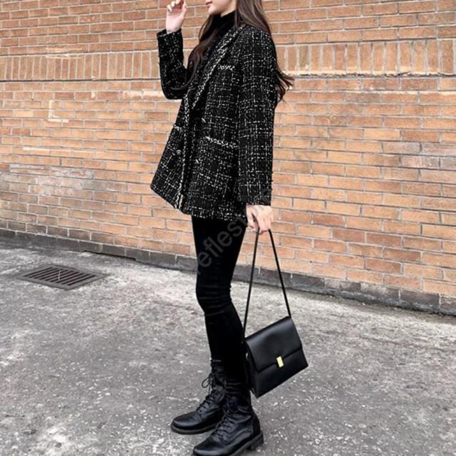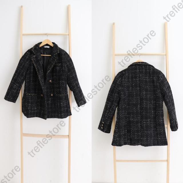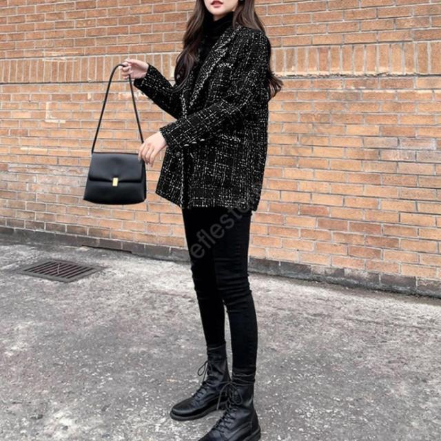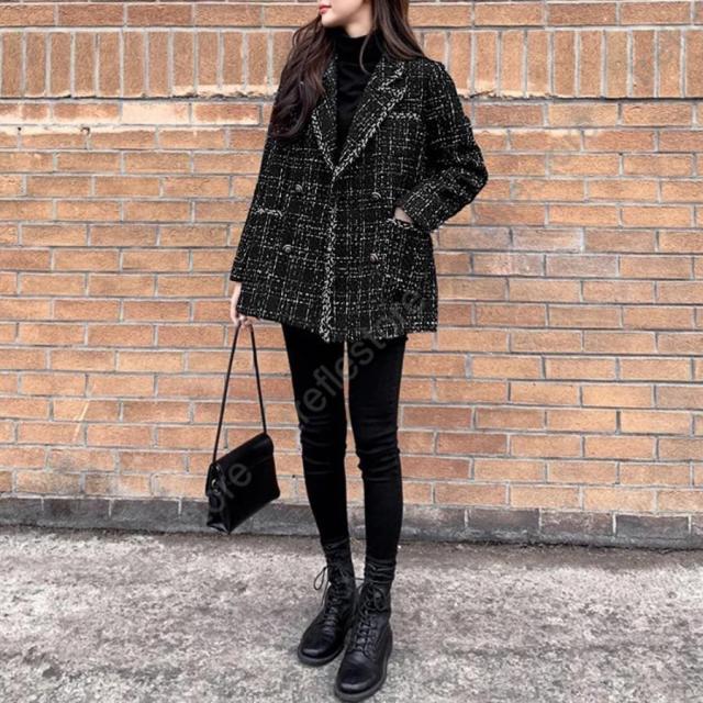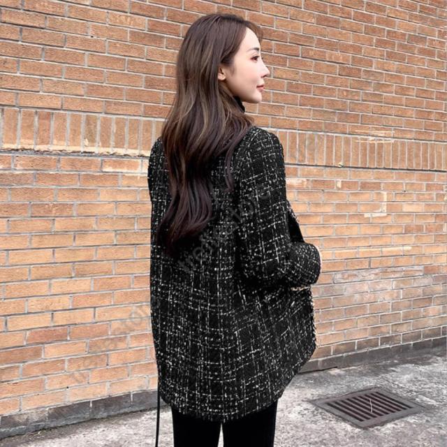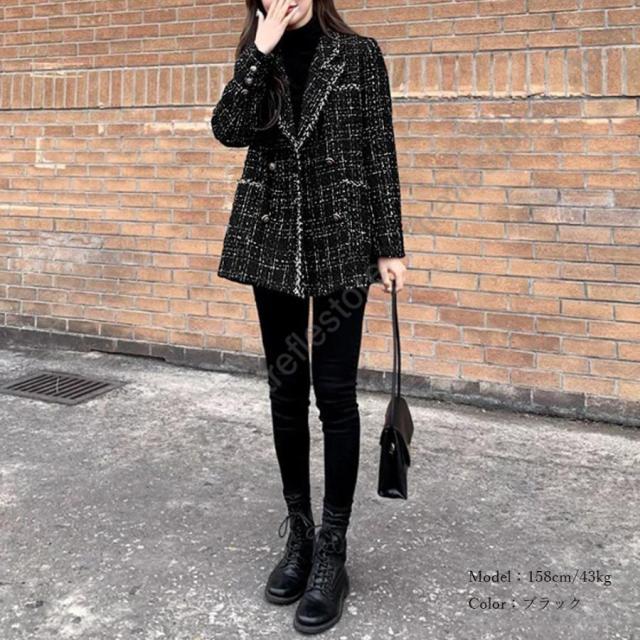 韓国風 チェック柄 ツイード風コート 長袖 オシャレ テーラードジャケット アウター カジュアル ジャンパー 着やせ