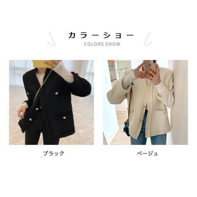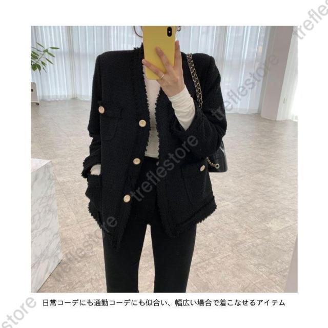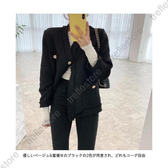 ツイード ジャケット 春 レディース ショートコート キレイめ ノーカラー レトロ 秋 アウター コート ツイードジャケット ノーカラージャケット ピーコート 春ジャケット 秋ジャケット 厚手 ブラック ベージュ