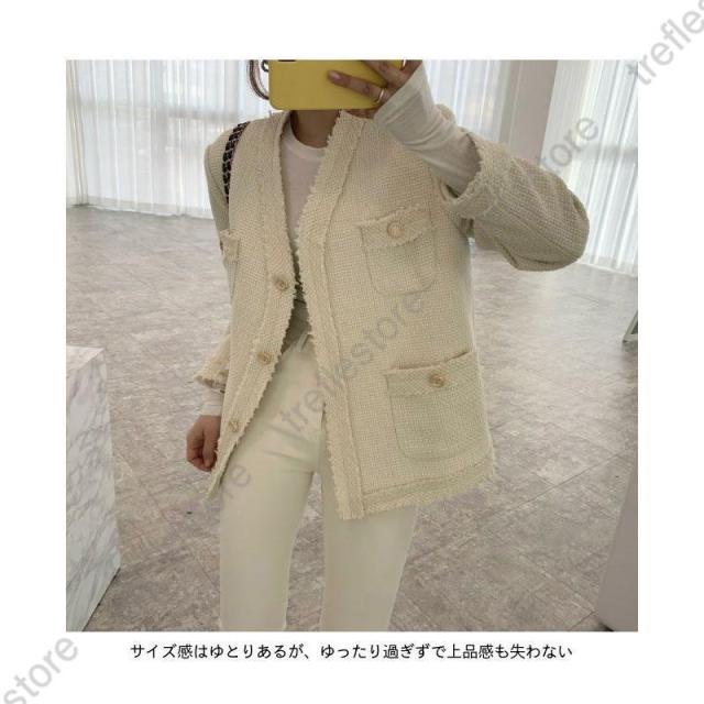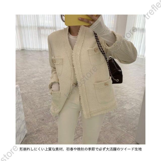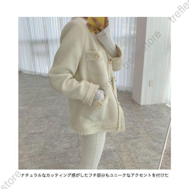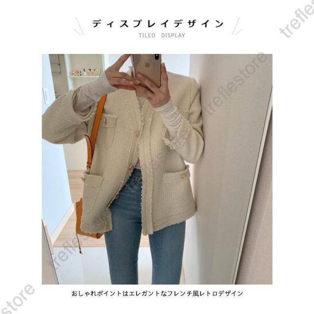 【ポイント5倍!】ツイード ジャケット 春 レディース ショートコート キレイめ ノーカラー レトロ 秋 コート ツイードジャケット ピーコート