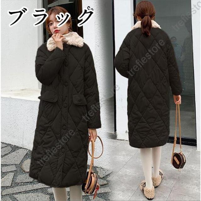 【ポイント5倍!】中綿コート キルティングコート レディース ロングコート アウター 冬 防寒 ファーカラー ダウンコート 無地 長袖 防寒コート 黒