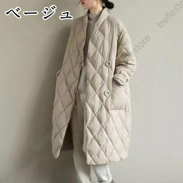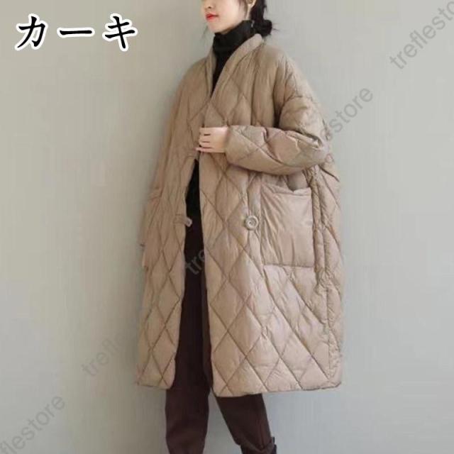 【ポイント5倍!】キルティングコート ロングコート レディース アウター 防寒 ダウン 中綿 秋 冬アウター 長袖 冬服 立てネック キルティングジャケット 大きめ ゆったり