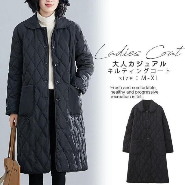 【ポイント5倍!】中綿コート レデース 冬 ロング丈 冬コート 中綿ジャケット キルティングコート アウター 無地 上品 ゆったり 体型カバー 通勤 OL カジュアル 30代 40代