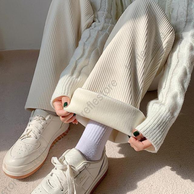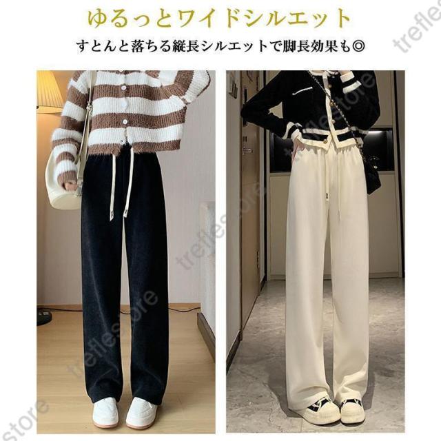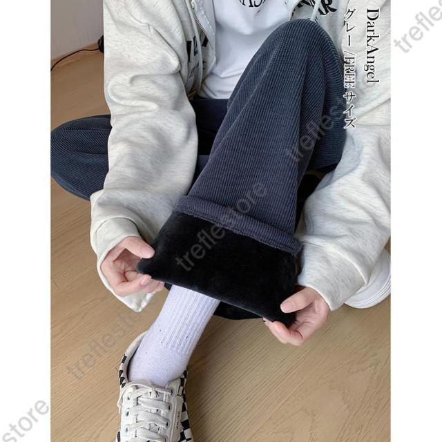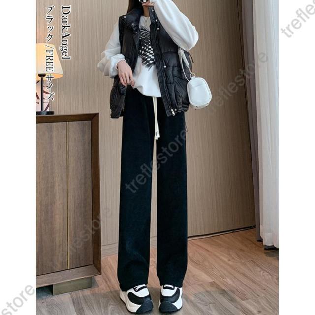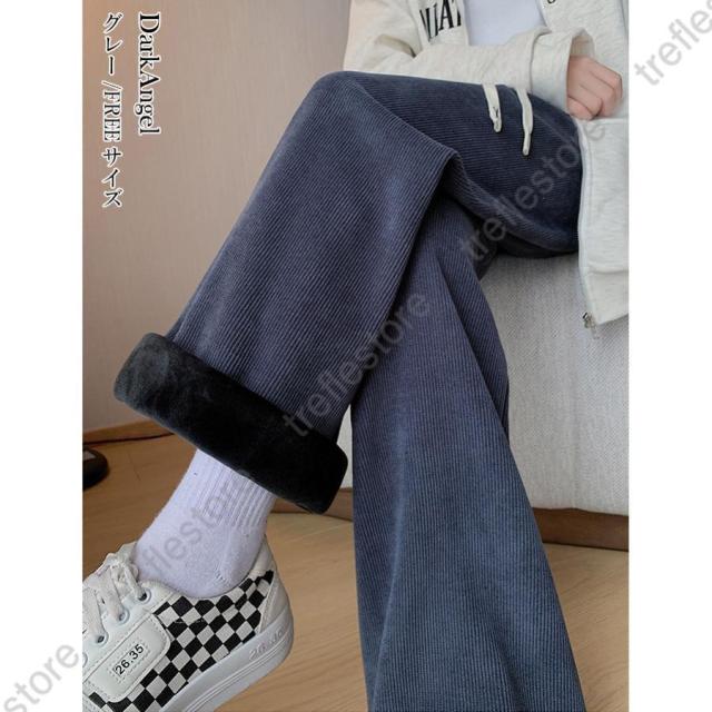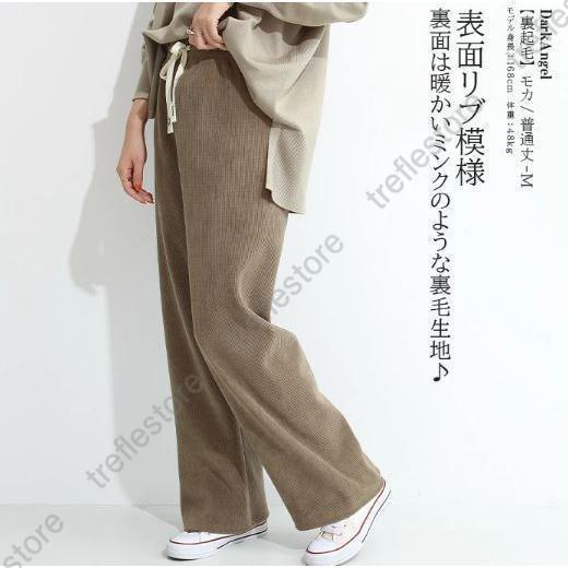 【ポイント5倍!】パンツ レディース 冬 裏起毛 コーデュロイ ワイドパンツ イージーパンツ あったかい 裏起毛パンツ ニットパン