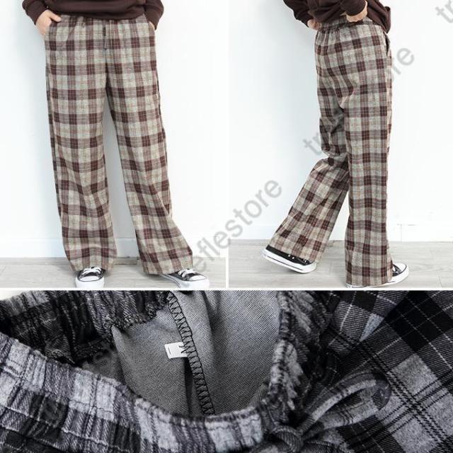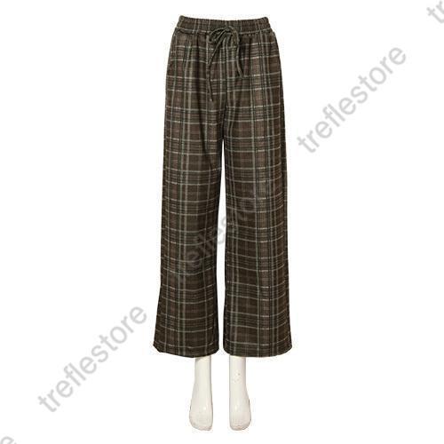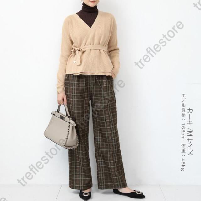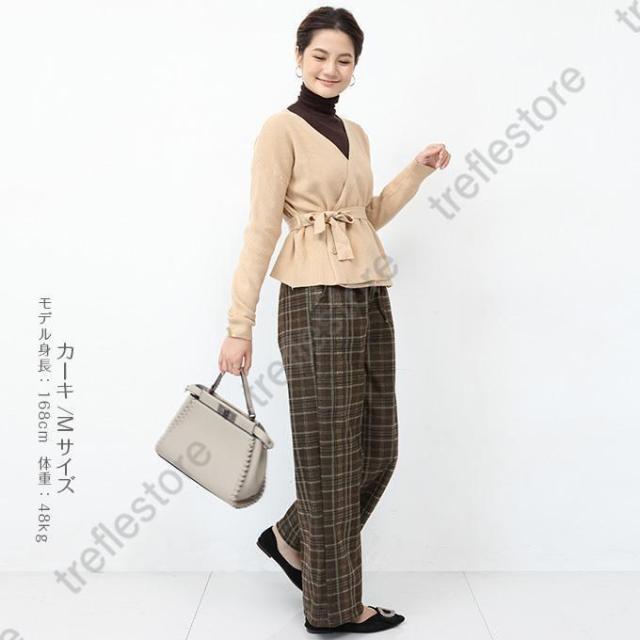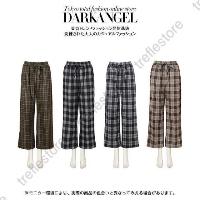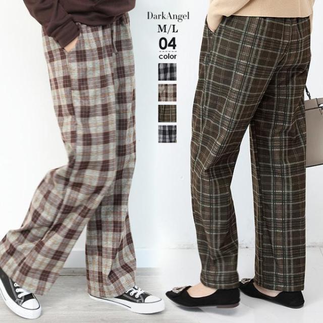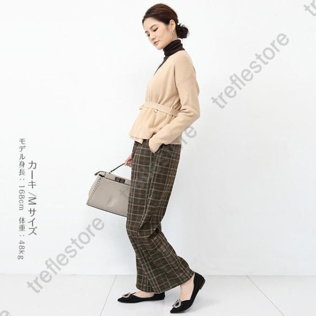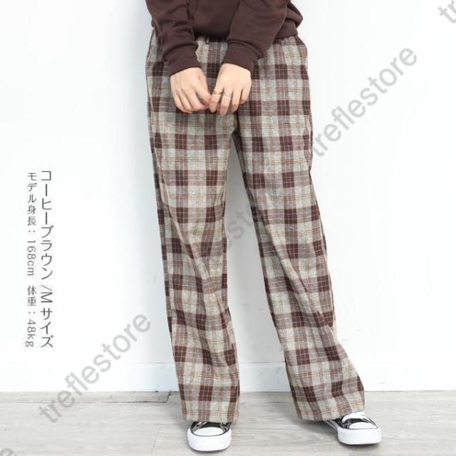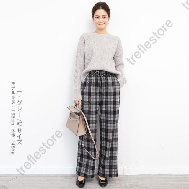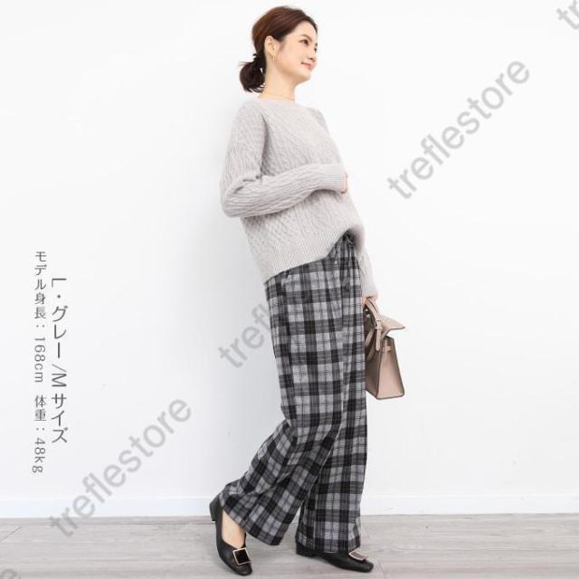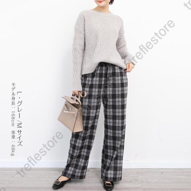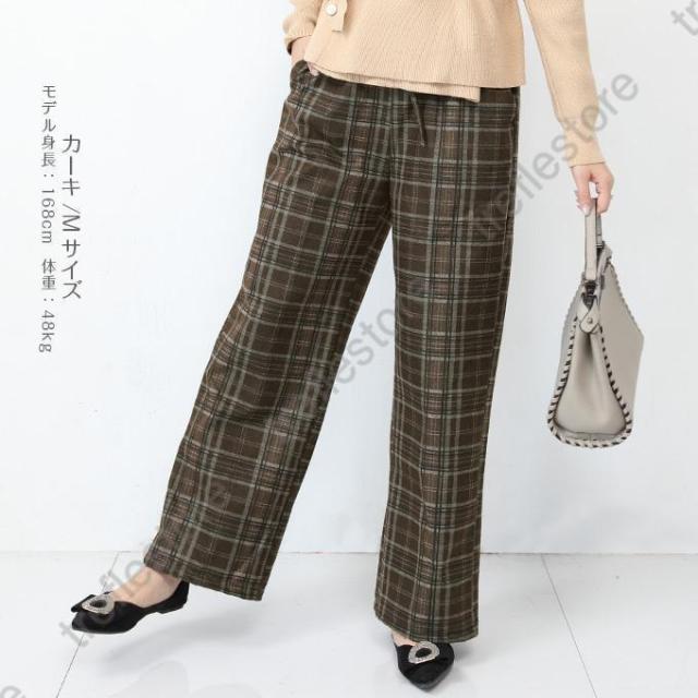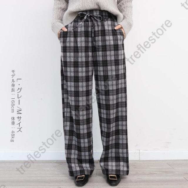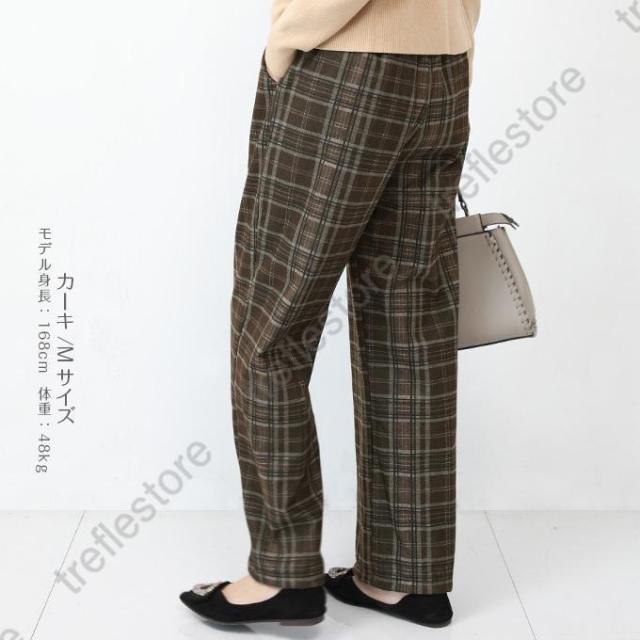 【ポイント5倍!】チェックパンツ ワイドパンツ レディース 秋冬 40代 50代 コーデ 冬 ボトムス ドロストパンツ ウエストゴム イージーパンツ ゆったり おしゃれ 柄 新作 M/L