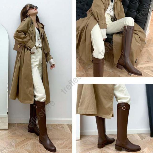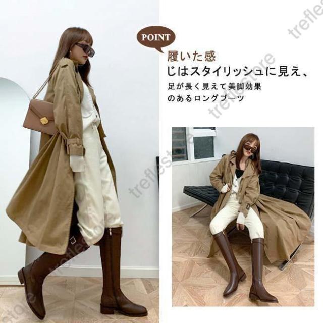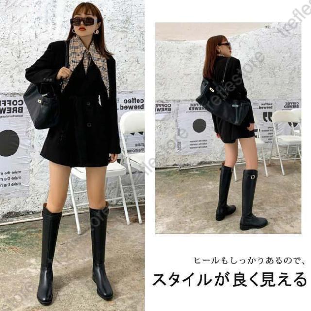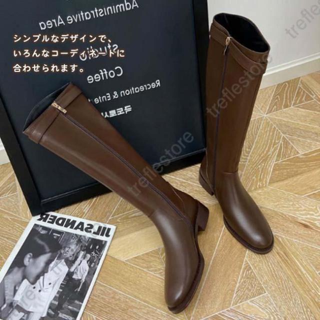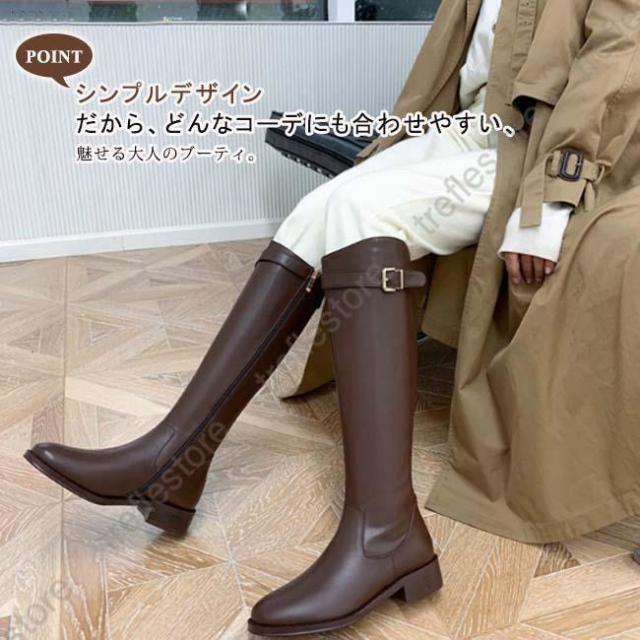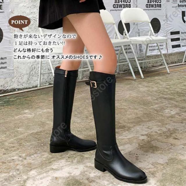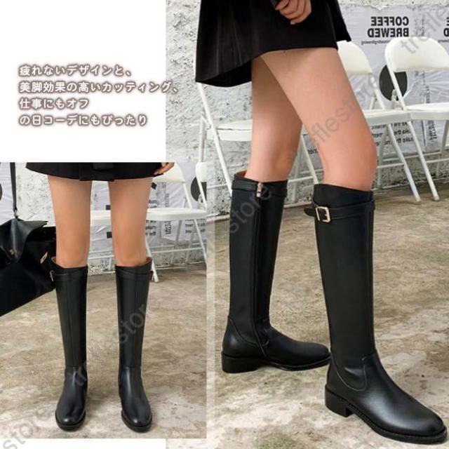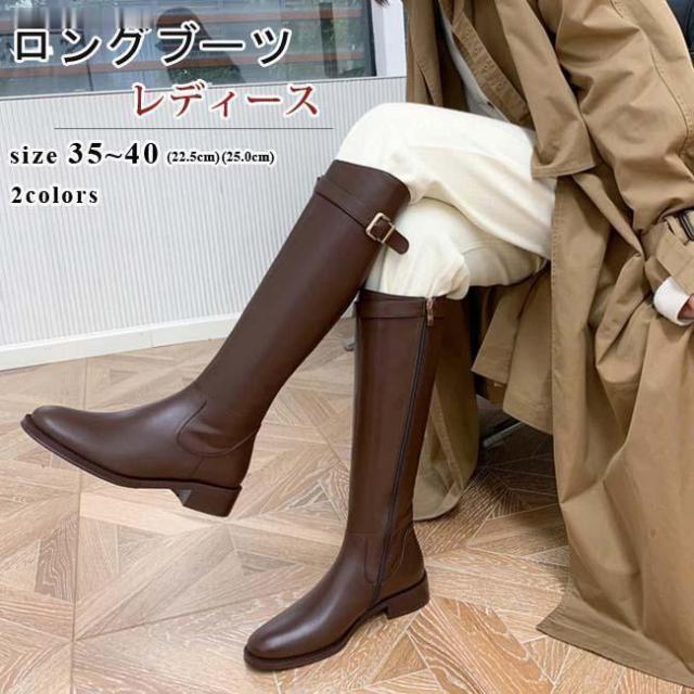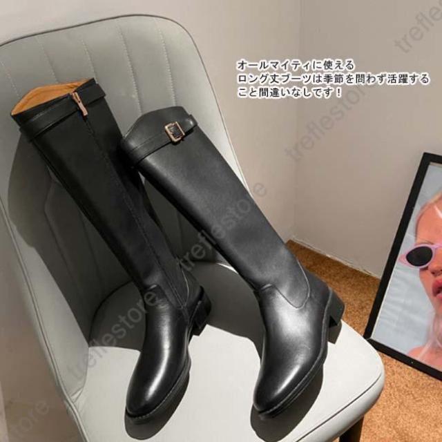 【ポイント5倍!】ロングブーツ レディース ラウンドトゥ ローヒール バックジッパー ウエスタンブーツ ロング丈 PU 合皮 おしゃれ きれいめ 履きやすい 歩きやすい 美脚 黒