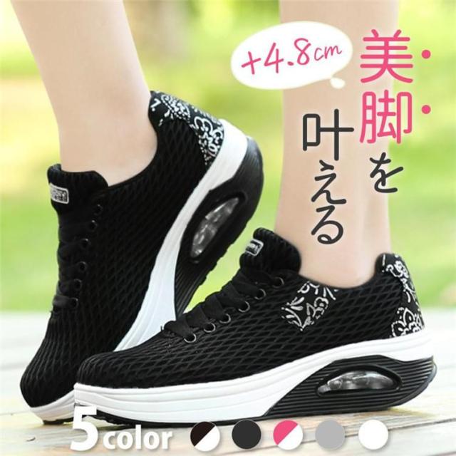 【ポイント5倍!】スニーカー レディース 厚底 靴 ウォーキングシューズ ナースシューズ 黒 白 美脚 疲れない 軽量 人気