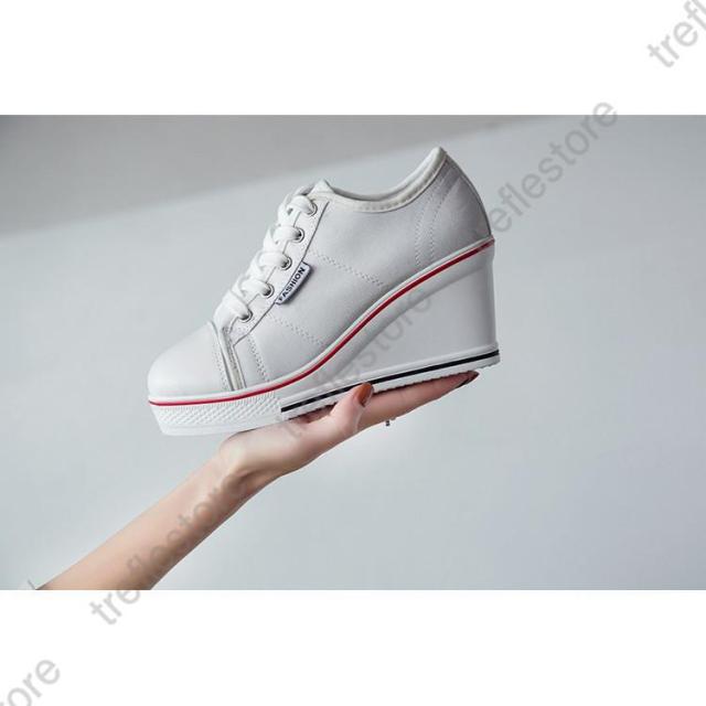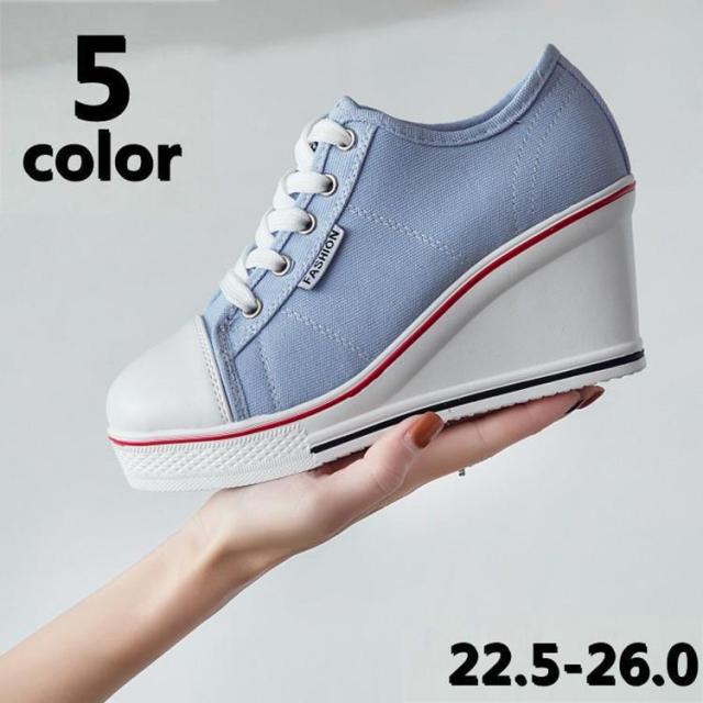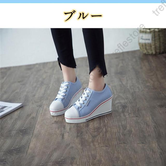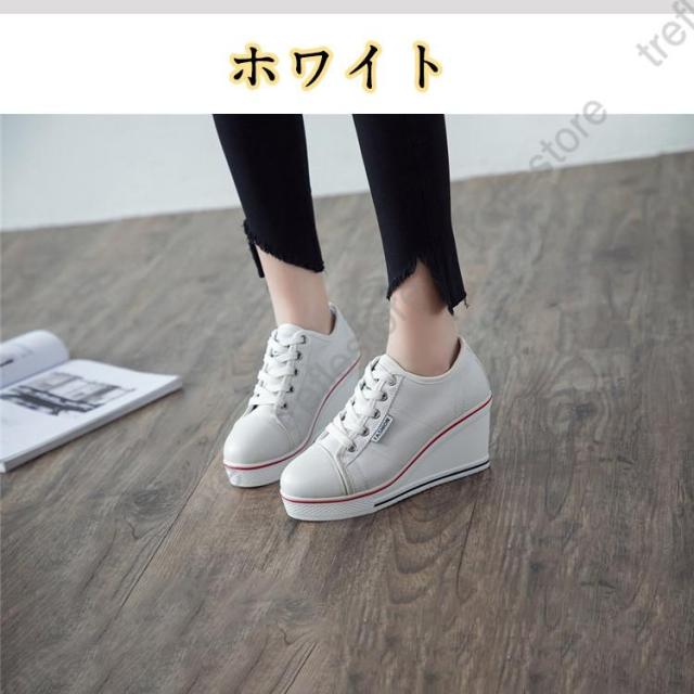 【ポイント5倍!】レディース 厚底スニーカー スニーカー ハイヒール ウェッジソール カジュアルシューズ 厚底 ローカット インヒール8cm 厚底 レースアップ 編み上げ