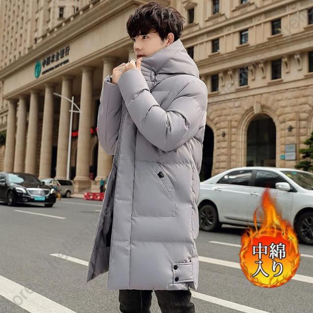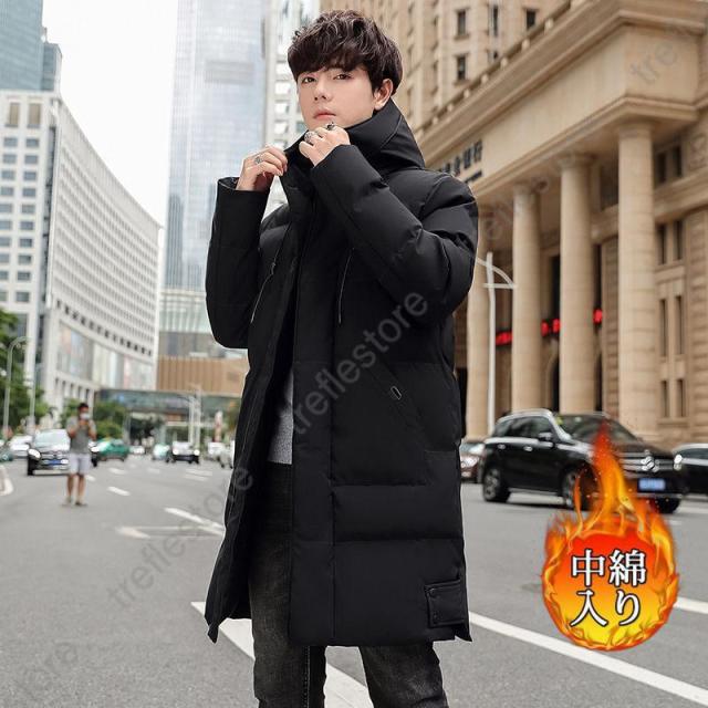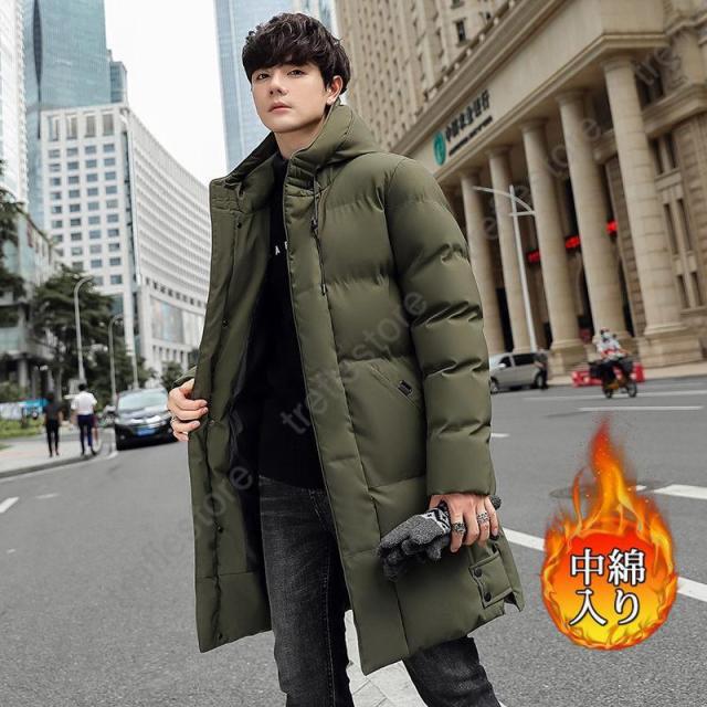 【ポイント5倍!】中綿コート メンズ ダウンジャケット ロング丈 ベンチコート フード付きアウター大きいサイズ 厚手 防寒 防風 スリム 撥水 冬 通勤