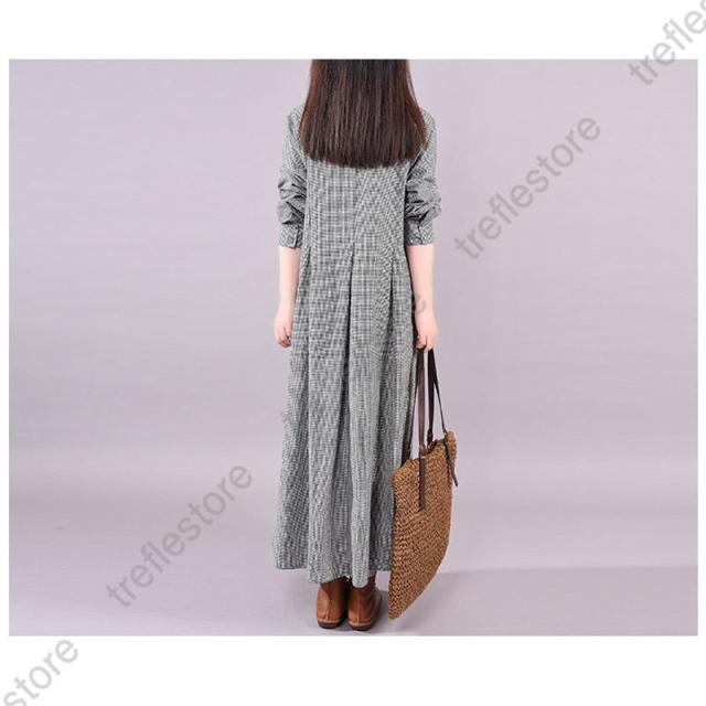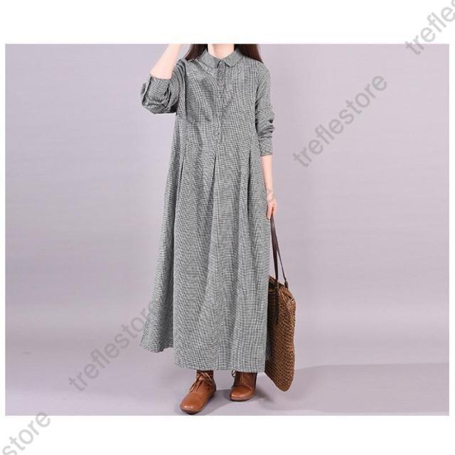 【ポイント5倍!】ワンピース 長袖 秋 ロングワンピース 秋 40代 レディース チェック柄 マキシ シャツワンピース ギンガムチェック 体型カバー ゆったり 大きいサイズ 春