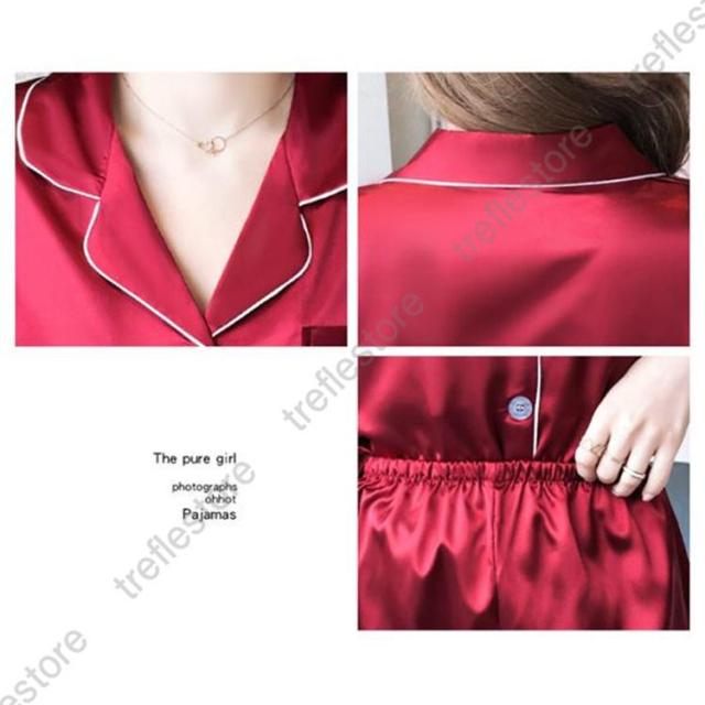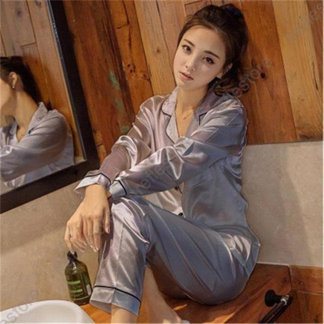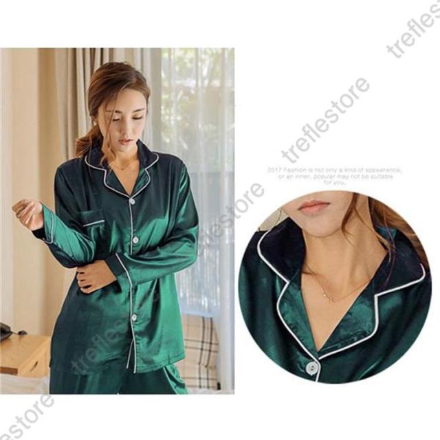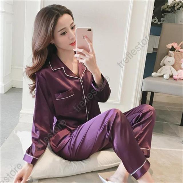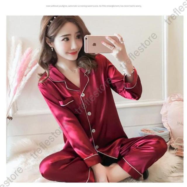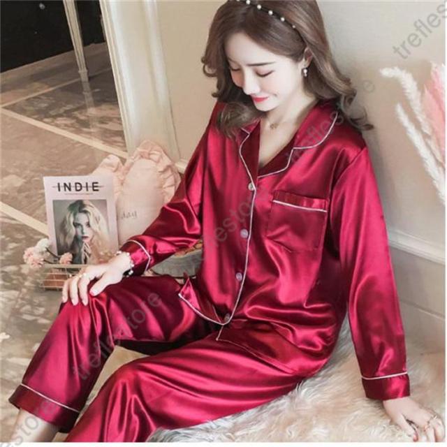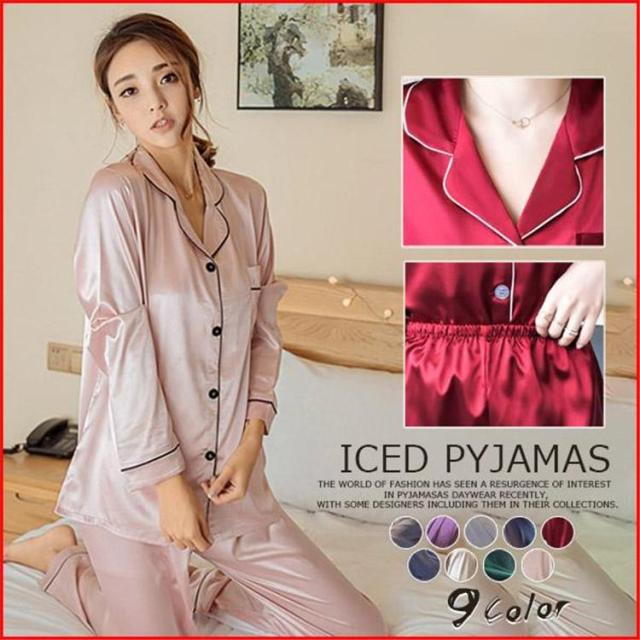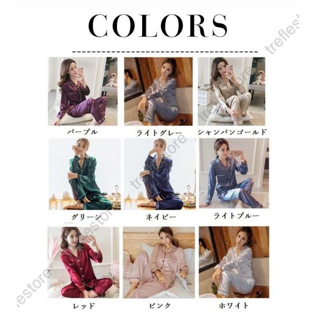 【ポイント5倍!】パジャマ レディース 上下セット 長袖 長ズボン 薄手 サテン 部屋着