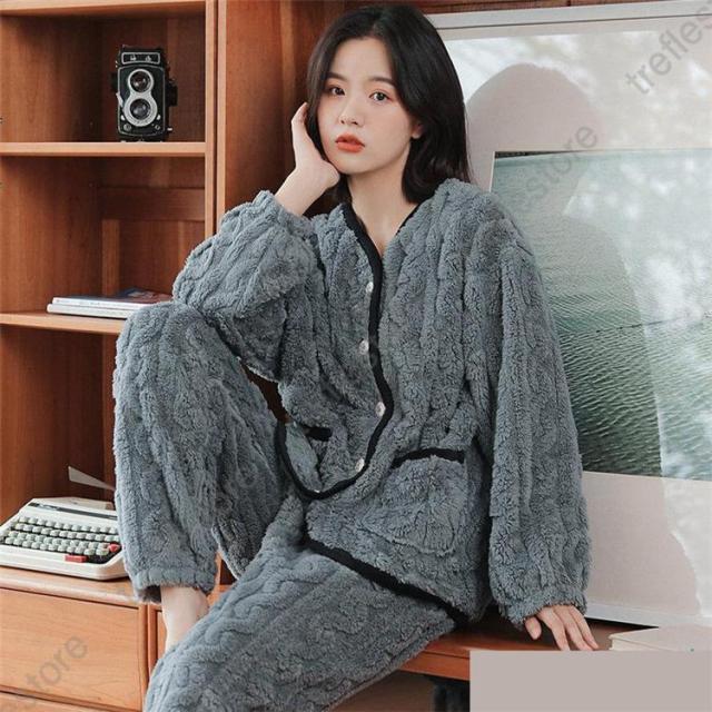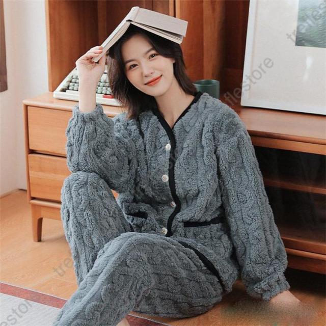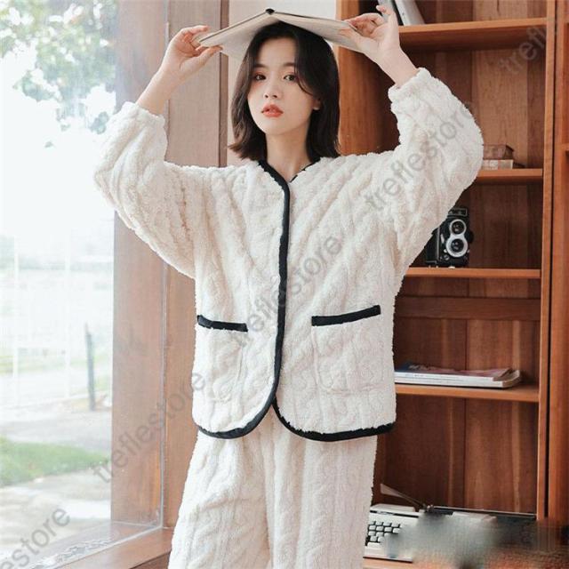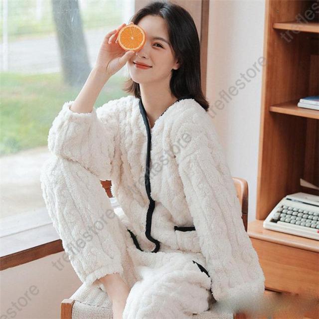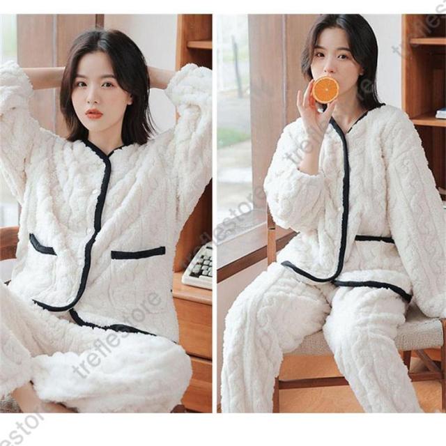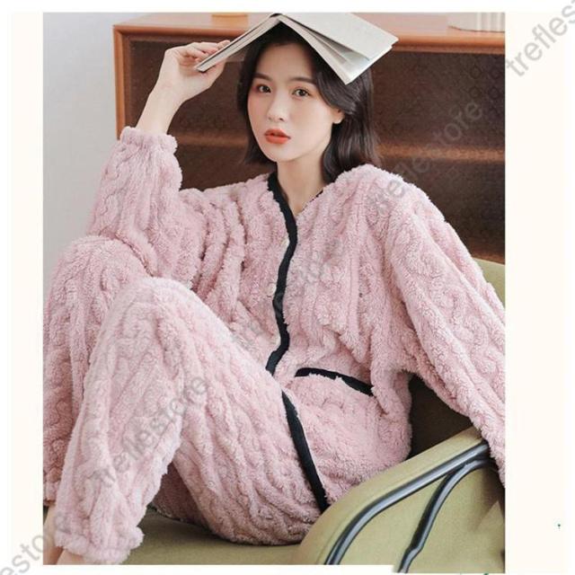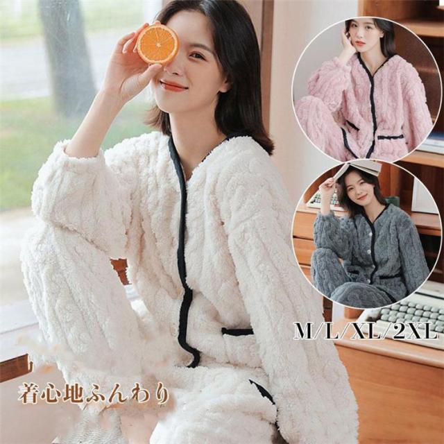 【ポイント5倍!】ルームウェア 上下セット 冬 パジャマ 長袖 前開き ルームウェア レディース かわいい 秋冬 あったかい 上下 モコモコ 部屋着