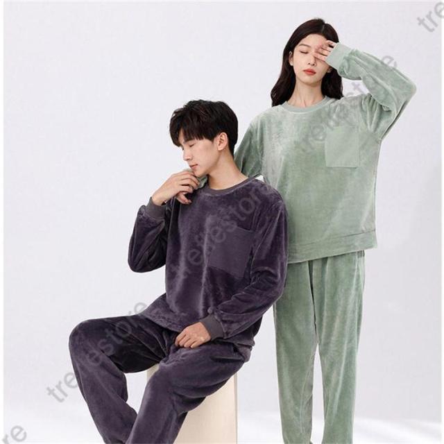 【ポイント5倍!】パジャマ レディース メンズ 冬 カップル 恋人 長袖 ルームウェア 上下セット ペアルック 可愛い ふわふわ あったかい 厚手 部屋着 入院着