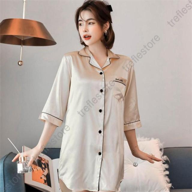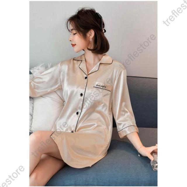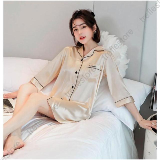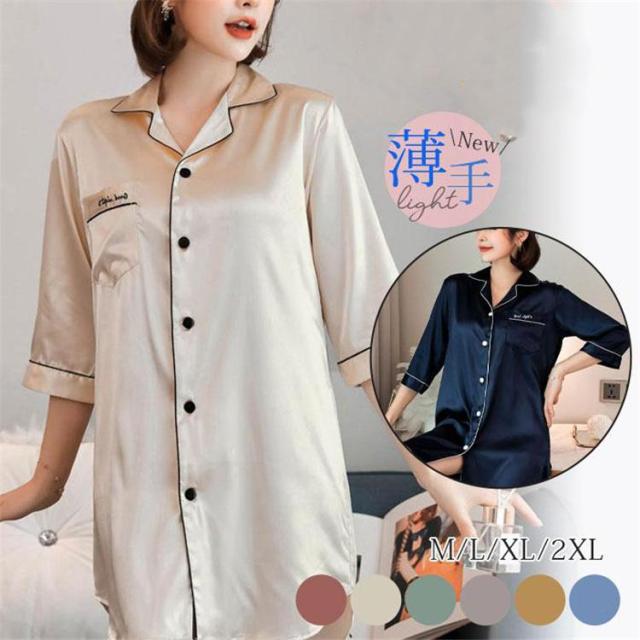 【ポイント5倍!】ネグリジェ パジャマ レディース ルームウェア 半袖 ひんやり 寝巻き 春夏 ワンピース シルクタッチ 寝間着 部屋着 ゆったり 薄手 体型カバー