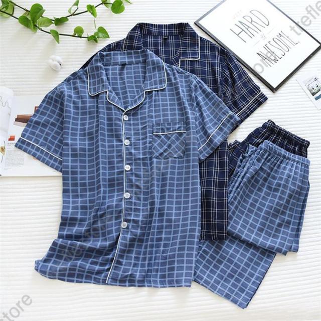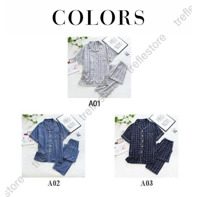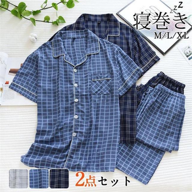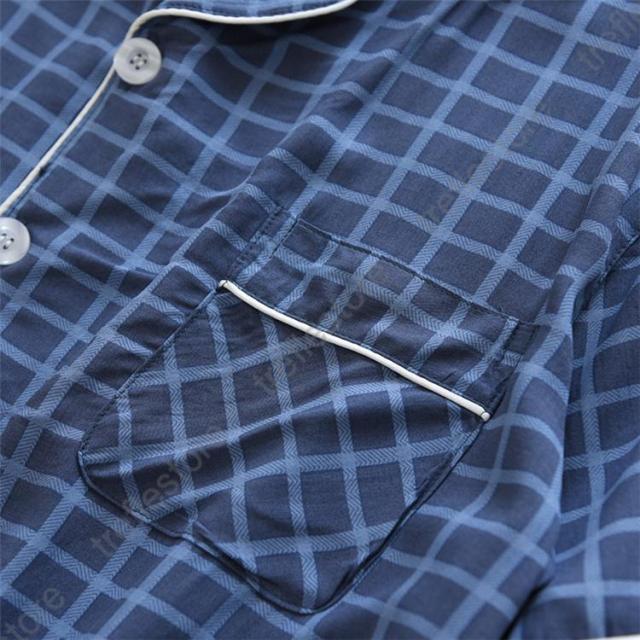 【ポイント5倍!】パジャマ メンズ ルームウェア 上下セット 夏 半袖 長パンツ 薄手 快適 柔らかく チェック柄 寝巻き おしゃれ 高級紳士パジャマ 父の日 ギフト