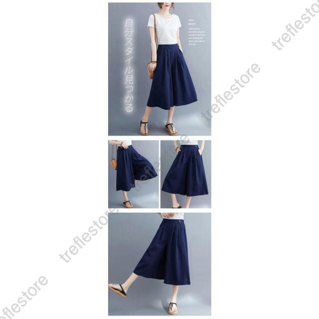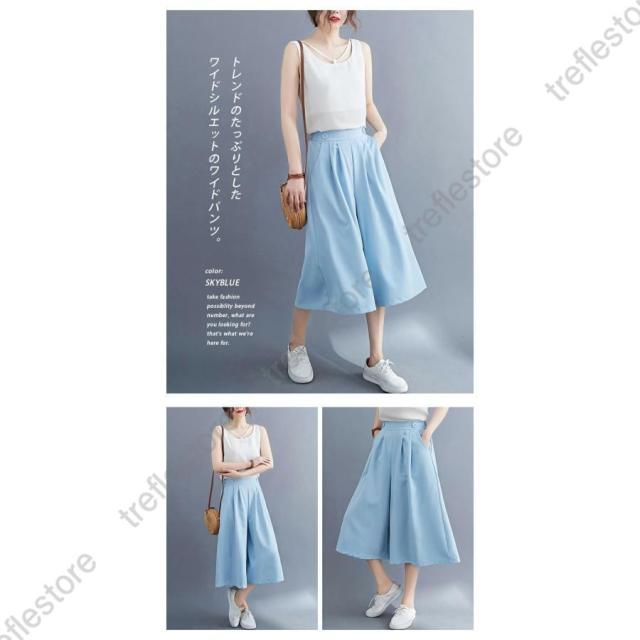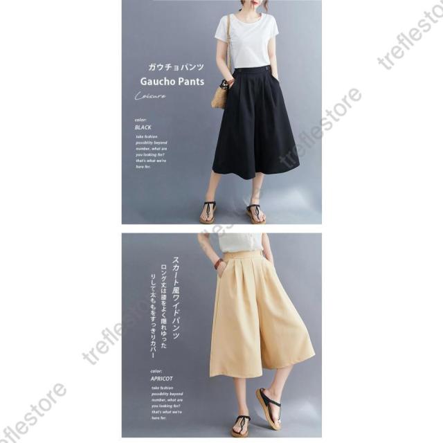 【ポイント5倍!】パンツ 七分丈 ガウチョパンツ レディース キュロット スカーチョ 膝丈 ワイドパンツ 大きいサイズ ボトムス 体型カバー 薄手