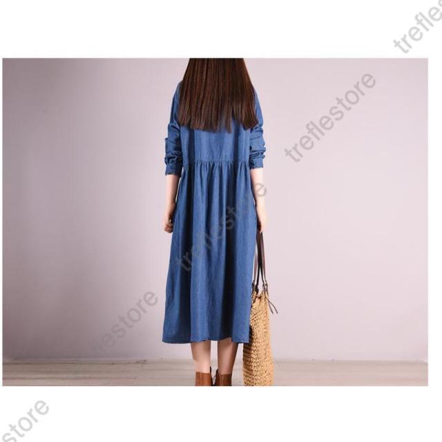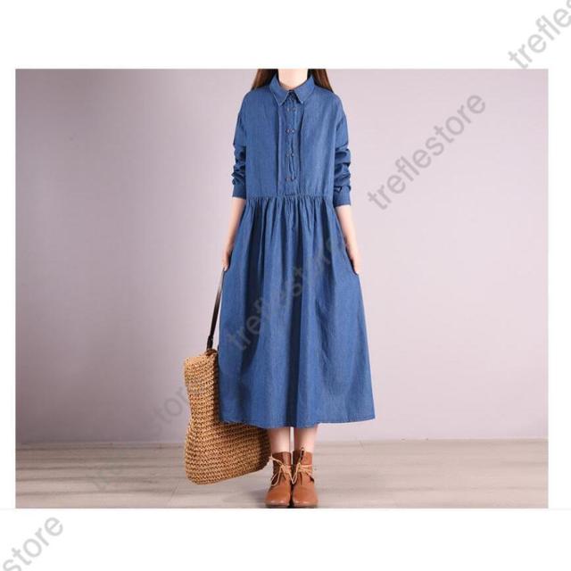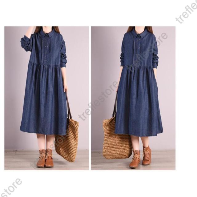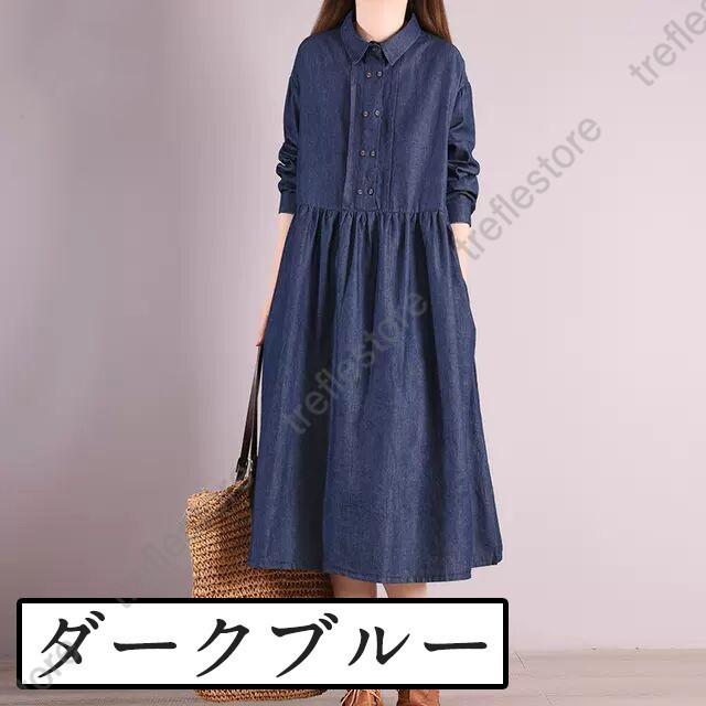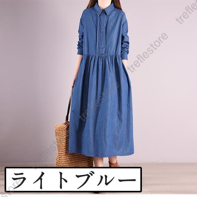 【ポイント5倍!】デニムワンピース 40代 秋 コーデ 長袖 デニム チュニック 膝丈 シャツワンピース ベルト付き aライン 着痩せ カジュアル おしゃれ 通勤 OL