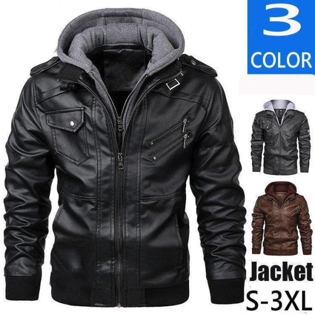 【ポイント5倍!】革ジャン レザージャケット メンズ ライダース 冬 フード付き バイクジャケット 大きいサイズ コーデ 革 ビジネス 開襟 暖かい 40代