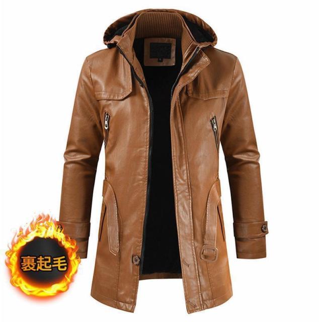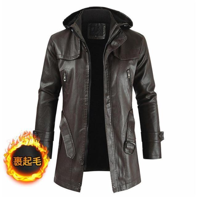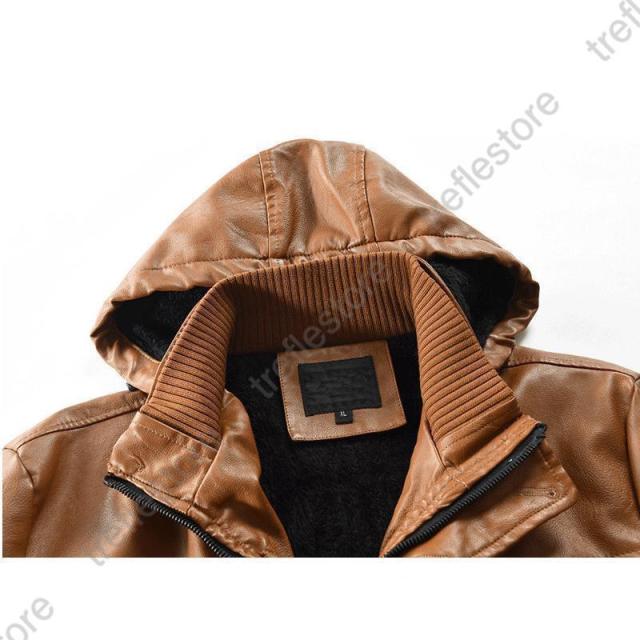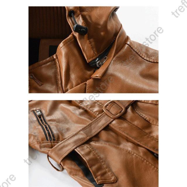 【ポイント5倍!】レザーコート 革ジャン メンズ レザージャケット 紳士服 アメカジ アウター 秋冬 PUレザー ライダースジャケット 開襟 フード付き 上品