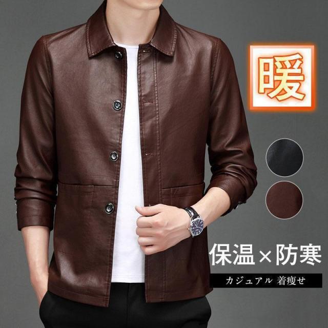 【ポイント5倍!】革 メンズ 革ジャン レザー 細め スリム シンプル 皮ジャン 春秋冬 ビジネス 着痩せ 新作 紳士用 アウター 防寒 シニア