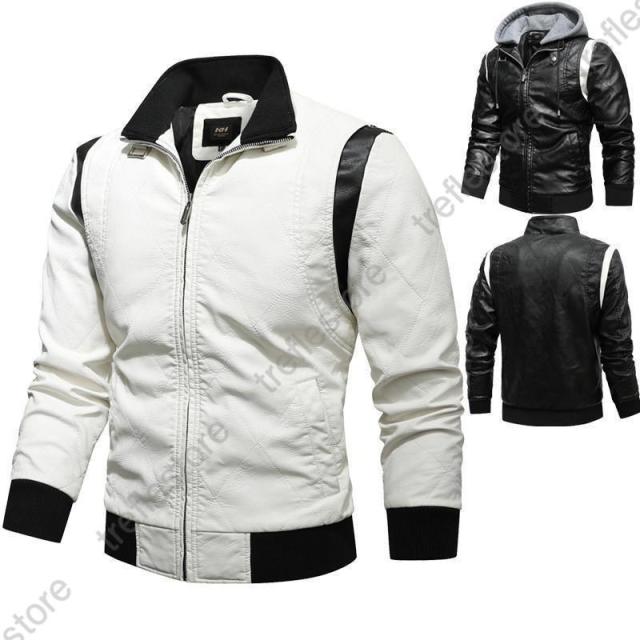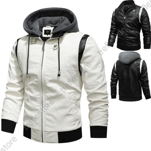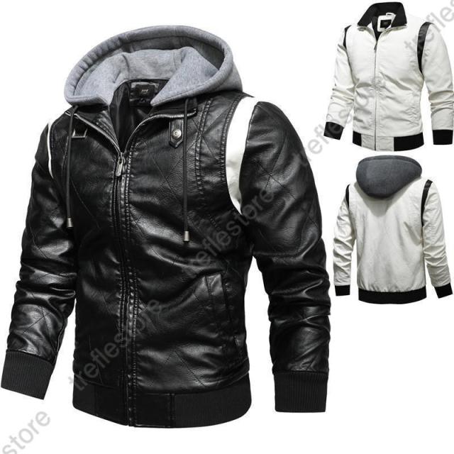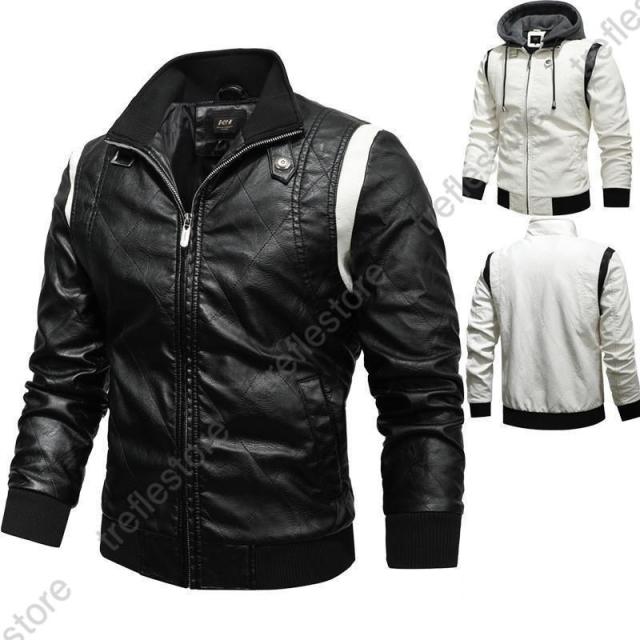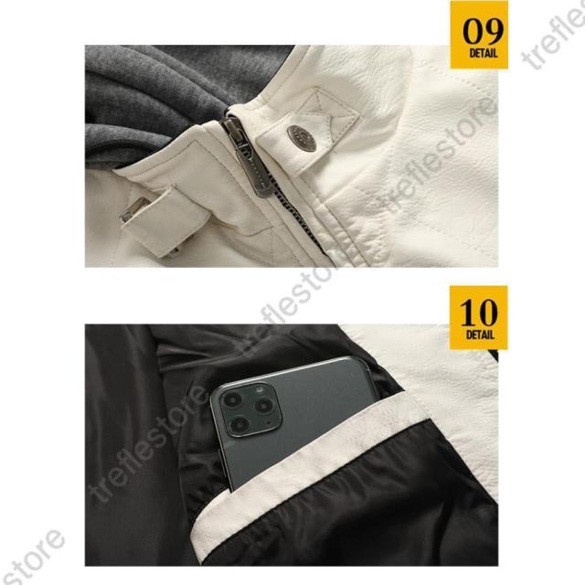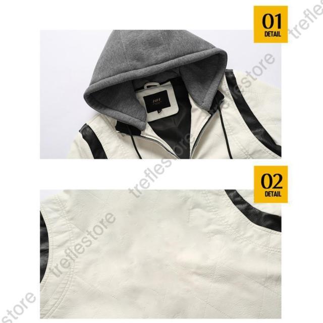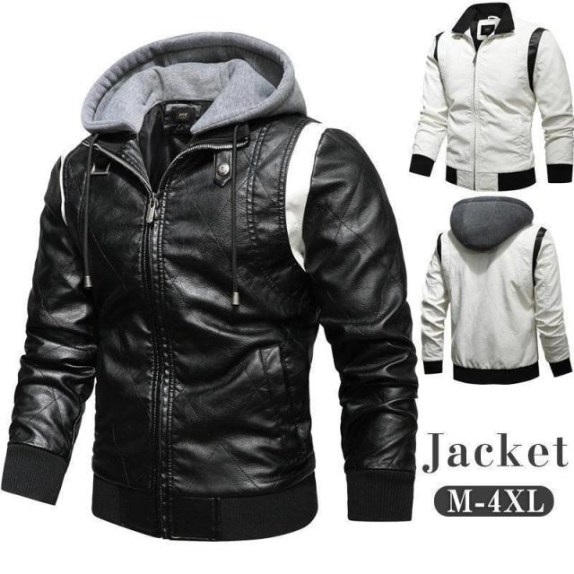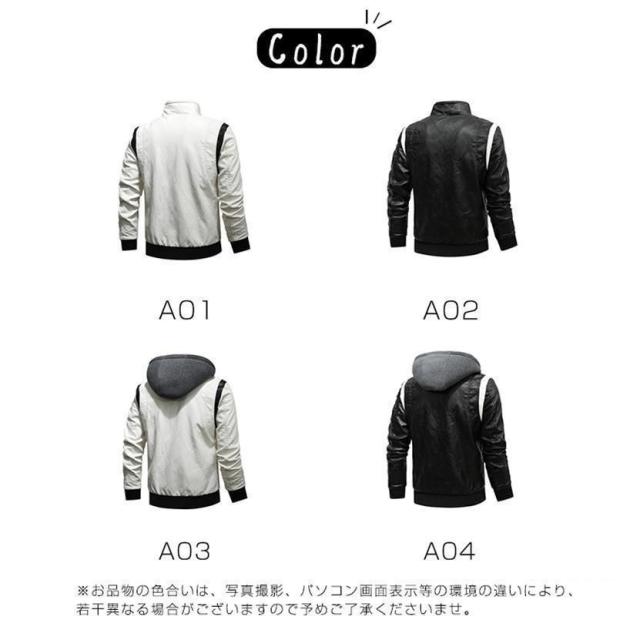 【ポイント5倍!】革ジャン メンズ レザージャケット レザーコート ライダースジャケット テーラード フード付き 革 開襟 刺繍 お兄系 アメカジ アウター