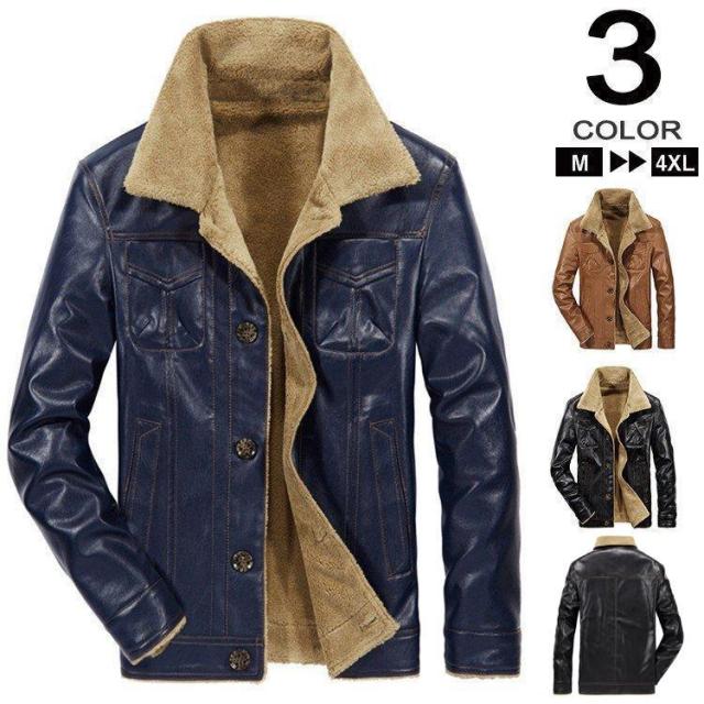 【ポイント5倍!】革ジャケット ライダースジャケット メンズ 革ジャン 裏起毛 ボア ジャケット ブルゾン 厚手 レザー アウター ジャンパー 秋冬