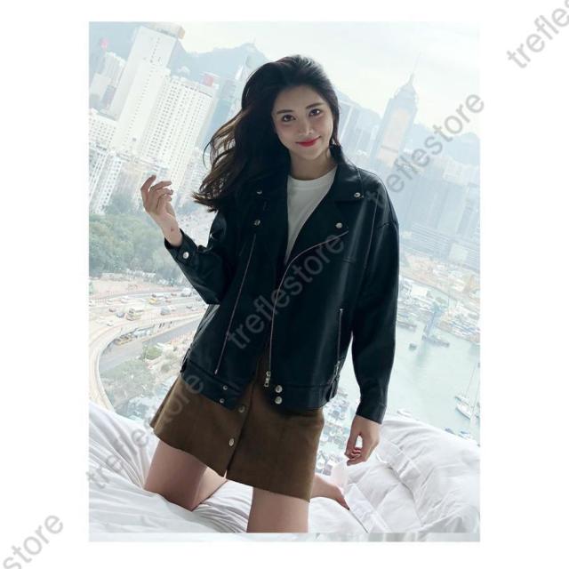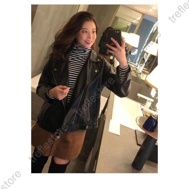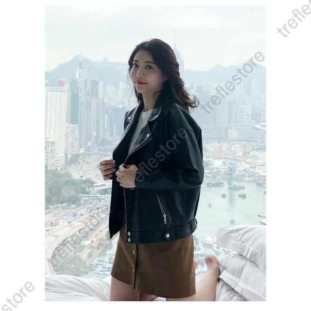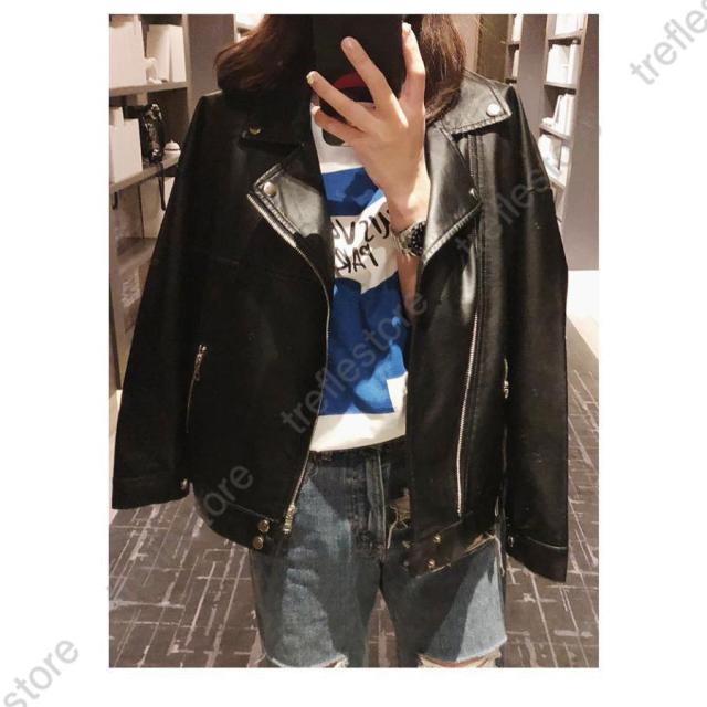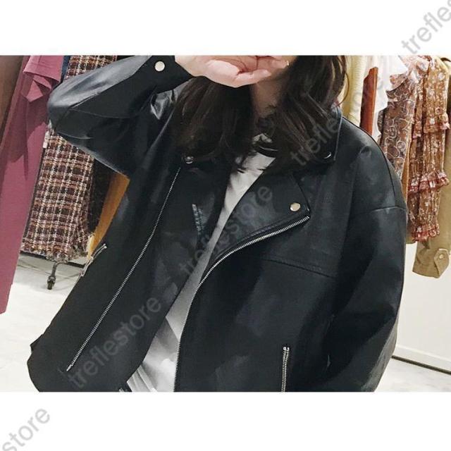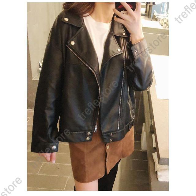 【ポイント5倍!】革 レディース 春秋新作 長袖PU革ジャン ブレザー 黒レザージ 皮衣 BF風トップス 40代 カジュアル 春コート 着痩せ 韓国風 オーバー