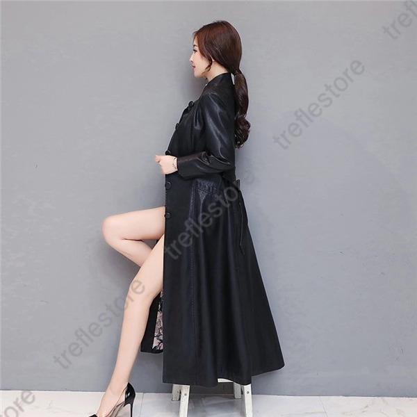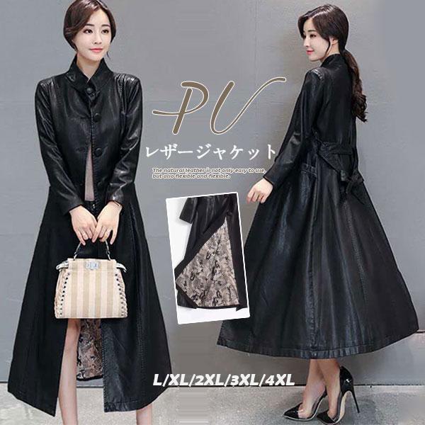 【ポイント5倍!】レザージャケット 革ジャン ロング ジャンパー レディース PU 合成革 ライダース ブルゾン コート おしゃれ 立ち襟 カジュアル 着痩せ 秋服