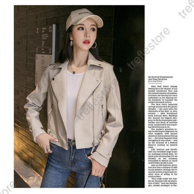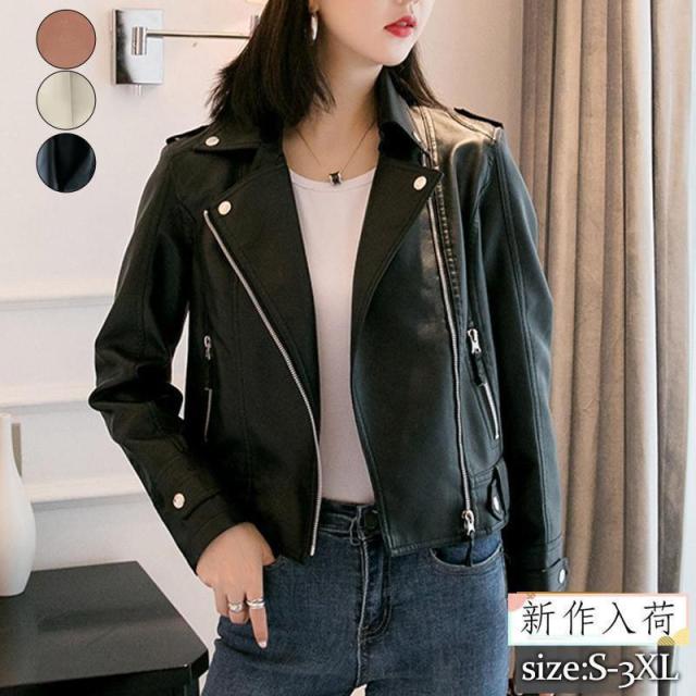 【ポイント5倍!】革ジャン レディース レザージャケット ショート丈 ライダースジャケット ブルゾン アウター 羽織 ゆったり 着痩 韓国風 防風 春秋 おしゃれ 新作