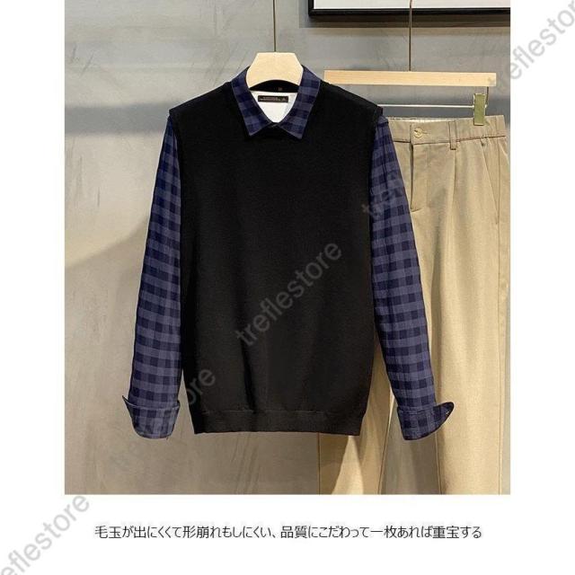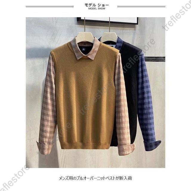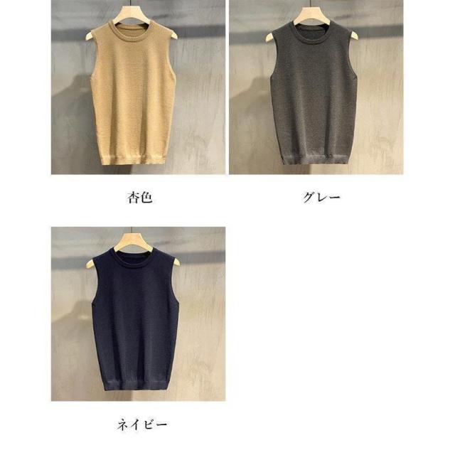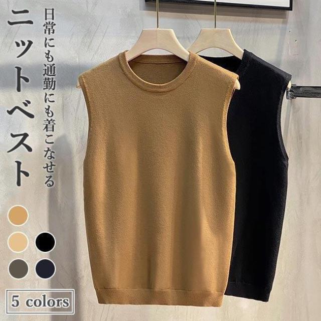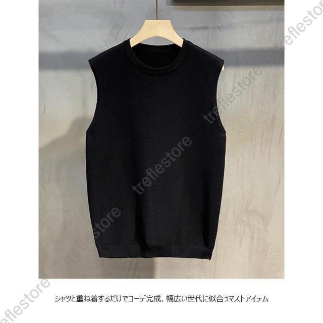 ニットベスト メンズ ラウンドネック ニット ベスト ジレベスト 丸首 プルオーバー ジレ 秋 チョッキ ニットベスト メンズジレ クルーネック